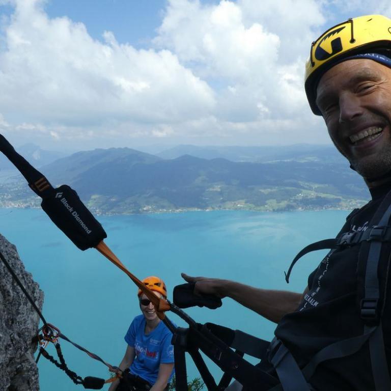 Da unsere Zwerge Urlaub bei Omi und Opa machten, entschlossen wir uns einen Klettersteig zu gehen. Schöner, langer und nicht zu schwerer Klettersteig auf den Mahdlgupf direkt beim Attersee. Die Tour, vorbei an der mächtigen "Weißen Wand", erfordert etwas Kondition - fast 1200 Seilmeter führen zum Ausstieg direkt neben dem Gipfel! Im Mittelteil ist die Kletterei steil und tlw. etwas ausgesetzt. Gesamt benötigten wir 4 Stunden. 30 Minuten Zustieg, 2 Stunden Klettersteig und 1 Stunden Abstieg...