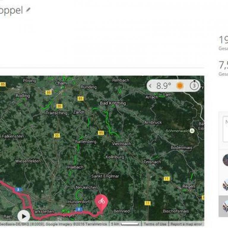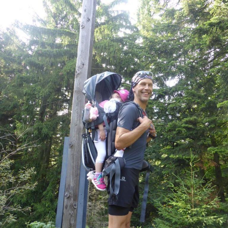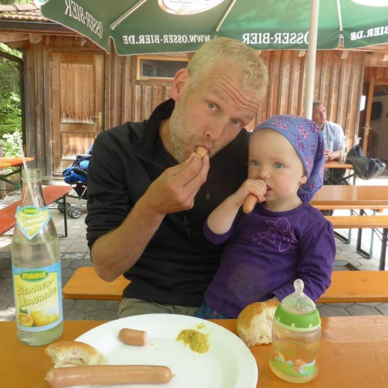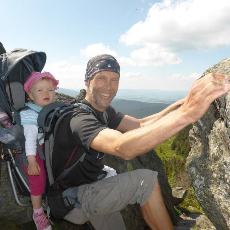 Dank der unsicheren Wettervorhersage entschieden wir uns gegen einen Klettersteigtour in den Bergen. Dafür gingen Brigitte und ich am Samstagvormittag klettern in Mitterfels am Teufelsfelsen, was uns wieder sehr viel Spaß machte und am Nachmittag Mountainbiken von Schwarzach bis Englmar, Maibrunn mit Ziel Hanslhütte, wo es eine Radler, Kuchen und a Schnapserl gab :-) Mit dem MTB und Babyjogger holten wir dann Emma bei Opa und Omi in Lintach ab und Zuhause hatten wir dann 55 km 1300 Hm auf dem Tacho stehen. Da waren wir natürlich ganz zufrieden.