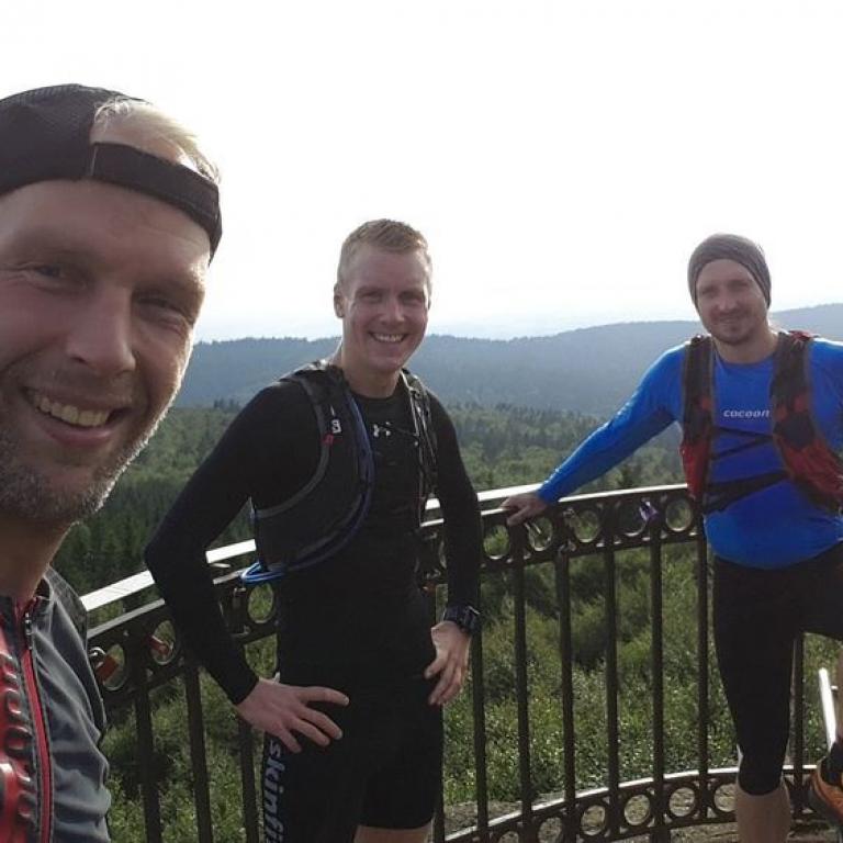 Freitag: Trailruntraining mit der Elite: Mit meinen Kumpels Jupp und Floh machte ich die Gipfel um Schwarzach unsicher - 36,2 km 1400 Hm (Schopf 925 m, Hirschenstein 1095m, Rauher Kulm 1050 m, Vogelsang 1022 m, Burgstein 833 m)