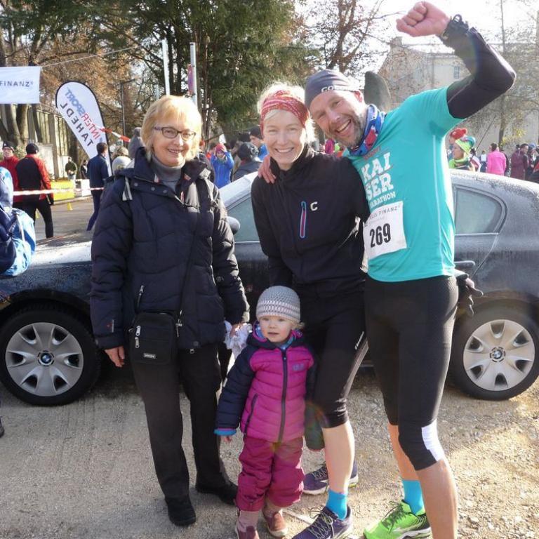 Wir quartierten uns dann bei Christoph, Kathrin und Johanna ein, um am Sonntag gemeinsam zum Nikolauslauf in Regensburg zu fahren. Sau stark besetzt, vom Olympiateilnehmer, Deutsche, Bayerische Meister, alles was das Herz begehrt und wir mittendrin auf der 5 km Strecke: Meine Bestzeit verfehlte ich um 18 Sekunden und kam mit 17:36 Minuten als 19. ins Ziel. Aber dank eines der besten Trainer der Welt (natürlich ich :-) ) schaffte Brigitte eine mega persönliche Bestzeit in 25:36 und einem 30. Gesamtplatz. Wieder einmal war ich sau stolz auf mein Runningwife...