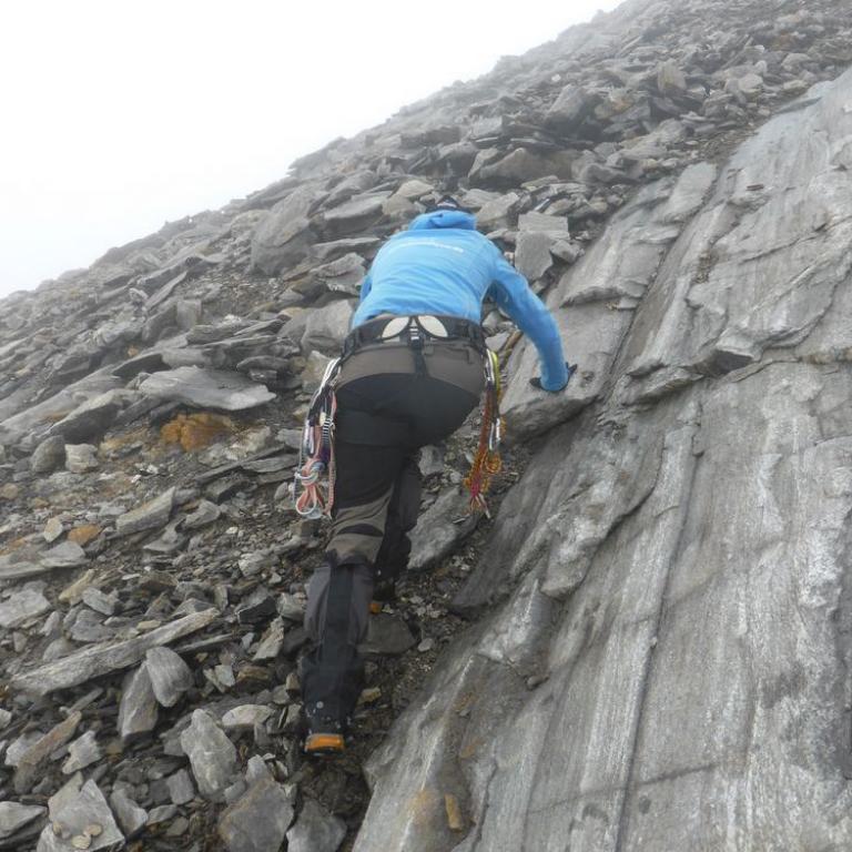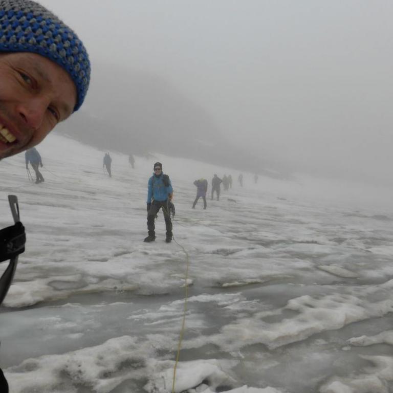 Schnee, nur Eis, Nebel, teilweise extrem schwer zu laufen |