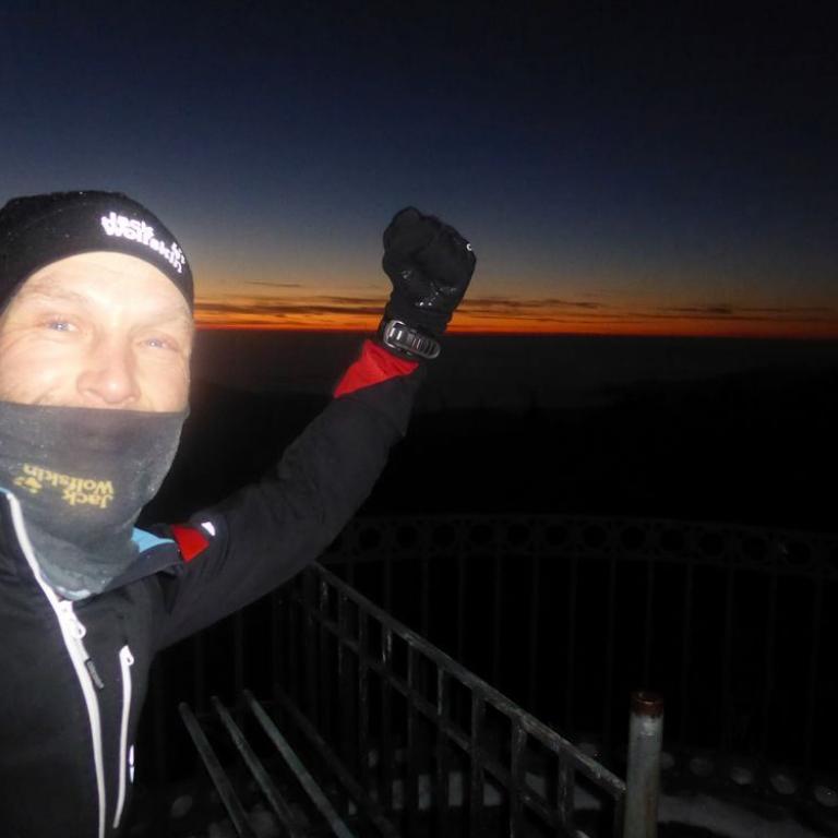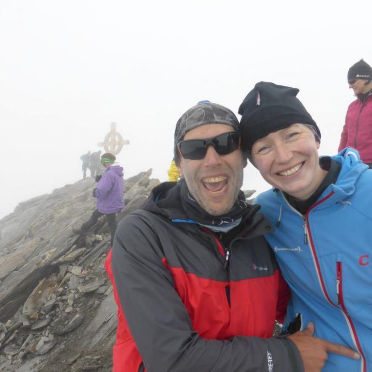 Matsch, Schnee, am Gipfel Sonnenuntergang, runter Nebel extrem |