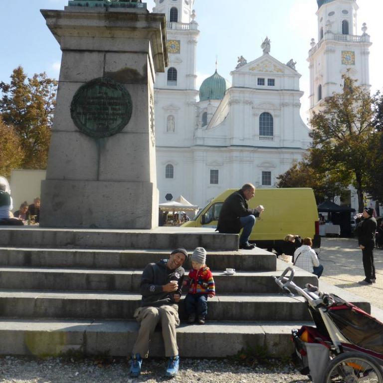 Emma wünschte sich eine Zugfahrt. Also kein Problem, wir fuhren nach Plattling und von dort mit dem Regionalzug für 30 Euro nach Passau. Emma war begeistert und sauste im Abteil umher. Nach 35 Minuten waren wir auch schon am Hauptbahnhof in Passau bei herrlichem Sonnenschein :-)