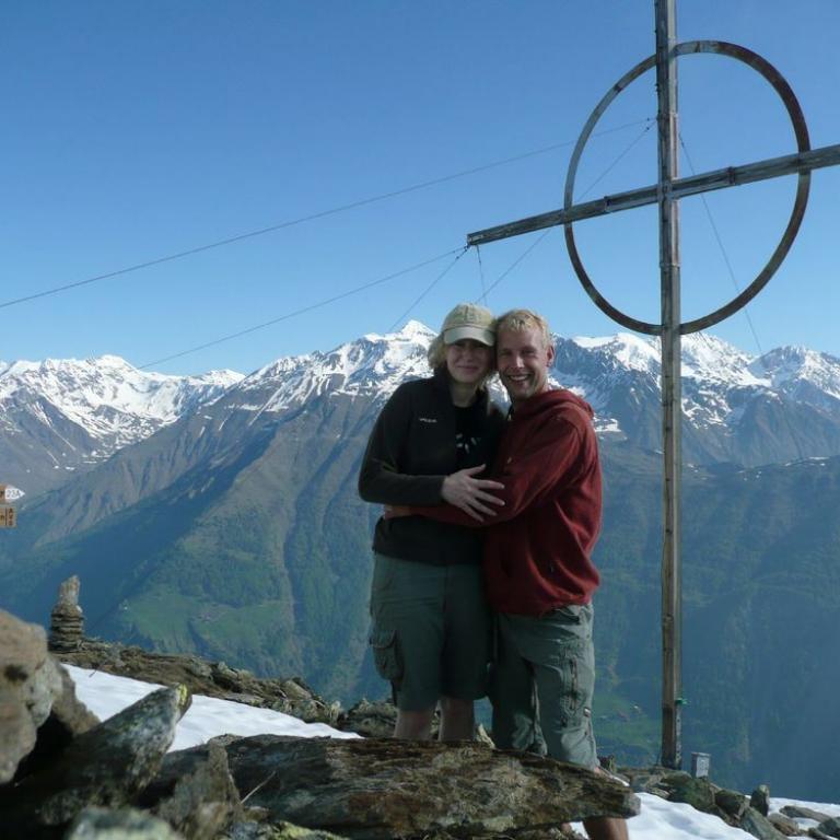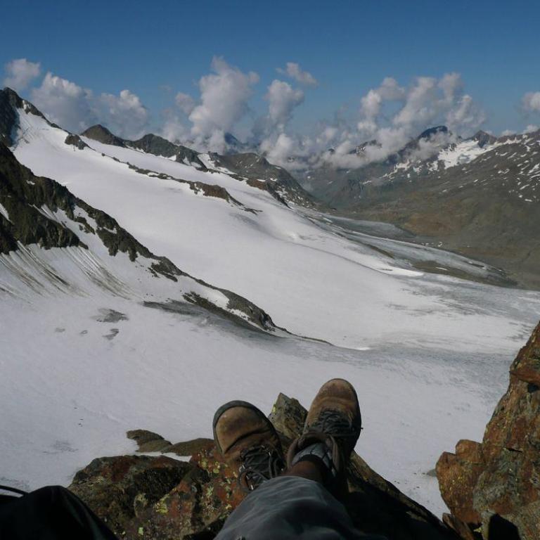 - Mit meinem Kumpel Wolfgang machte ich eine Mountainbiketour über 1300 Höhenmeter von Längenfeld zur Amberger Hütte. Am Montag gingen wir zuerst den schwierigen Klettersteig (C und D Passagen) Reinhard Schiestl in Längenfeld, bevor wir in Obergurgel zu unserer viertägigen Hüttentour aufbrachen. Am Nachmittag erfolgte der Aufstieg zum 3006 m hoch gelegenen Ramolhaus. Am Dienstag überschritten wir das Ramoljoch (3189 m) und stiegen ab zur Martin Busch Hütte. Von hier unternahmen wir am Nachmittag die Gipfelbesteigung der 3455 m hohen Kreuzspitze. Wir hatten eine sensationelle Aussicht. Mittwoch überschritten wir den Sayerkogel (3355 m) und stiegen zum Hochjoch Hospiz ab. Am Donnerstag wanderten wir zur Breslauer Hütte. Hier bestiegen wir noch den 3114 m hohen Urkundkolm, bevor wir wieder ins Tal abstiegen.