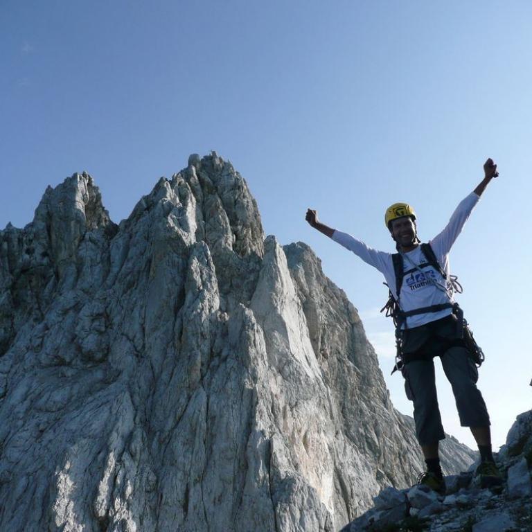 Ein weiterer Kurs stand auf dem Programm: Aufbaukurs im Alpinklettern mit unserem Kursleiter Werner, Brigitte, ihrem Bruder Hans, meine Wenigkeit und 2 weitere Alpenvereinsmitglieder Michael und Michael im Wettersteingebirge auf der Meilerhütte. Nach dem fast 5 stündigem Aufstieg übten wir noch Standplatzbau und wie man in einer Seilschaft funktioniert. Gleich am 2. Tag stand eine große Klettertour an, da nur an diesem Tag das Wetter beständig sein sollte. Wir bezwangen in knapp 15 Seillängen und 12 Stunden, wo wir an unsere Grenzen gingen, die Partenkirchener Dreitorspitze NO-Gipfel mit 2634 m. Am Samstag wurde nochmals Standplatzbau, gehen mit dem Halbseil bei einer 3 er Seilschaft und Prusikrettung geübt. Am Nachmittag gingen wir noch zum Sportklettern, bevor am Abend das ganze mit einer zünftigen Hüttengaudi gefeiert wurde und wir dann am Sonntag wieder abstiegen.