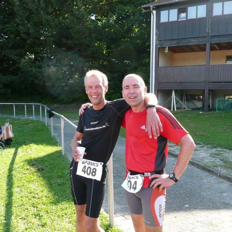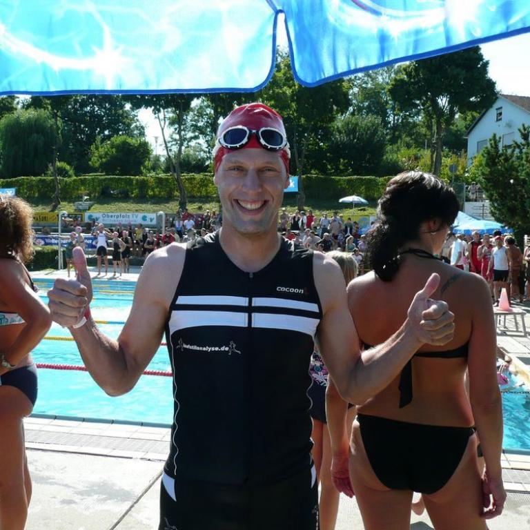 2 Wochen vor dem Ironman, nach unzähligen Trainingskilometern und nach 2 harten Trainingstagen fuhr ich mit meinem "Coach" Brigitte etwas angeschlagen nach Schwandorf um den Oberpfälzer Seenlandtriathlon in der Kurzdistanz zu bestreiten. Trotz schwerer Füße war ich heiß auf den Wettkampf. Mir war natürlich klar, das ich beim Triathlon, dank meiner Schwimm und Radfahrschwäche vorne nichts mitzureden hatte, aber dabei sein ist alles und ich habe noch Potential nach oben :-). Das Wetter sah noch ganz gut aus und ich holte meine Startunterlagen. Natürlich traf ich wieder viele von der Laufstilanalyse, die teilweise bei der Sprintdistanz, Mitteldistanz und bei mir in der Kurzdistanz starten wollten....
