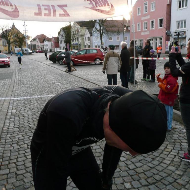 Eigentlich konnte der Lauf nichts werden. Gestern waren es einige Glühwein und Bier auf dem Christkindlmarkt und dann Toten Hosen Konzert in München zuviel. Unmotiviert und mit schlechtem Magen fuhren Brigitte und ich trotzdem direkt von München nach Regensburg. Viele Läufer von der Laufstilanalyse waren schon da und ich bekam von Ralf die Startnummer. Noch immer unmotiviert stand ich dann um viertel nach 11 am Start. Startschuß und los ging es. Es waren sehr viele schnelle Läufer auf der Strecke, die auch gleich davon zogen. Ich kämpfte mit einem 3:40 er Schnitt und Übelkeit :-)