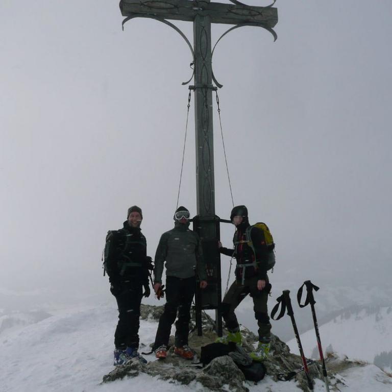 Bei herrlichstem Wetter fuhren Hans, Tom, Brigitte und ich nach Ettenhausen (Nähe Schleching), von wo aus wir den Breitenstein (Bayerische Voralpen) mit den Tourenskiern bestiegen. Bei Sonne, blauem Himmel und angenehmen Temperaturen konnten wir direkt vom Parkplatz starten. Über eine alte Skipiste ging es zuerst nach oben, bis wir an der Wuhrsteinalm vorbei kamen und weiter bis wir links einen steilen Hang empor mussten. An einer Scharte ließen wir unsere Ski stehen und marschierten noch bis zum Gipfel (1622 m), von wo wir eine herrliche Aussicht hatten. Die Abfahrt war für mich sehr schwierig, aber die Brotzeit auf der Alm entschädigte vieles :-)