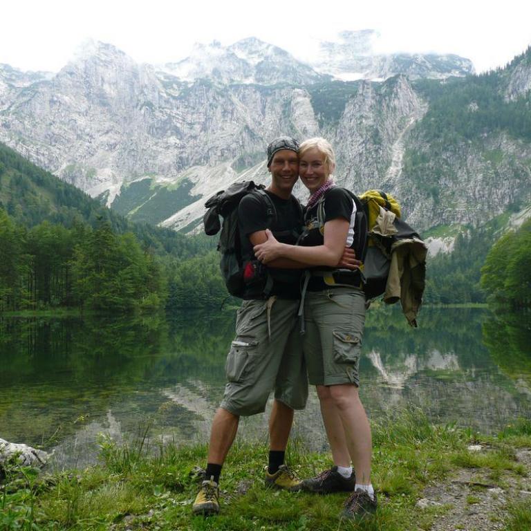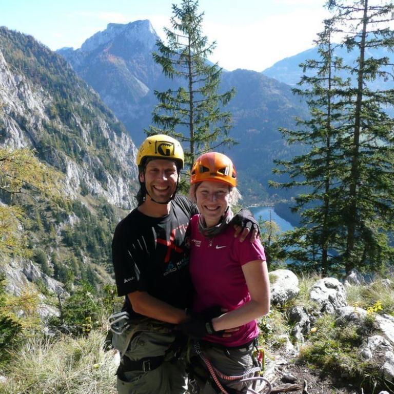 Das Oktoberwetter verlangte natürlich eine Bergtour. Also entschlossen Brigitte und ich eine Klettersteigtour zu starten. Mit dabei waren Freunde vom Alpenverein Straubing, Jupp, Peppi und Peter. Um halb 6 Uhr, bei starkem Nebel, fuhren wir in Richtung Österreich. Nach kanpp drei Stunden Fahrt erreichten wir bei nur 1 Grad den Leopoldsteiner See in der Nähe von Eisenerz (Steiermark - westliche Hochschwabgruppe). Trotzdem starten wir mit kurzer Hose unsere Tour. Kaum standen wir nach 15 Minuten am Einstieg, erreichten uns die ersten Sonnenstrahlen und es war T-Shirt Wetter angesagt. Innerhalb kurzer Zeit hatten wir schönstes Oktoberwetter mit 25 Grad Plus....
