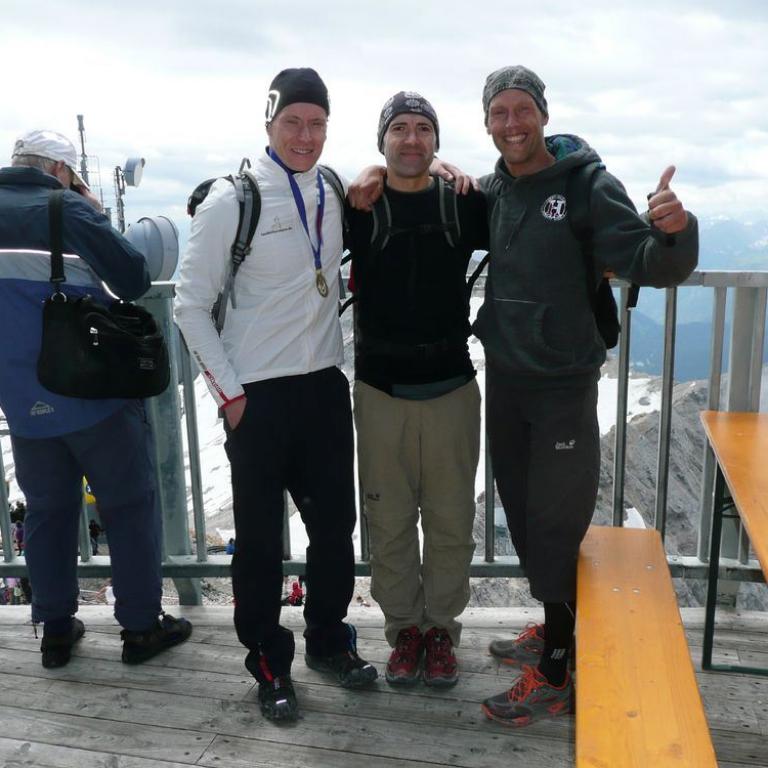 Wie so oft schon in diesem Jahr kann ich nicht von optimaler Vorbereitung sprechen. Vor 3 Wochen der Ironman, vor 1 Woche 5 tägiger Alpencross mit dem Mountainbike und zum krönenden Abschluß hatte ich mir am Freitag den Magen verdorben und übergab mich mehrfach, so das der Lauf normalerweise ins Wasser fallen musste. Aber am Samstag Vormittag war ich wieder fit und auch mit dem 30 min Probelauf war ich sehr zufrieden. Also rief ich gleich Fritz und Wolfi an, das es am späten Nachmittag nach Ehrwald zur Zugspitze ginge...