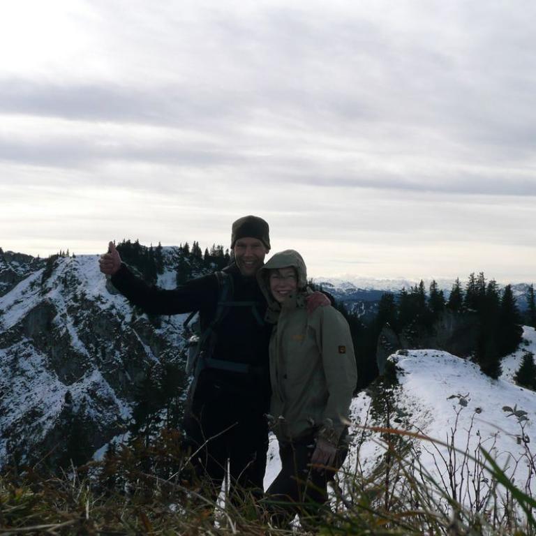 Freitag fuhren Brigitte und ich nach Grassau zur Ferienwohnung meiner Eltern. Zuerst stand Entspannung in der Priener Therme am Chiemsee auf dem Programm. Am nächsten Tag starteten wir früh zu einer abenteuerlichen Wanderung auf den Gröhrkopf 1562 m und Weißgrabenkopf 1578 m. Wir hatten herrliches Herbstwetter und ab ca. 1200 m lag schon Schnee, so das unsere "vergessenen Pfade in den Bayerischen Hausbergen" zum Abenteuer wurden.