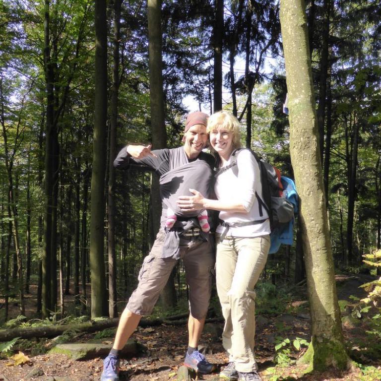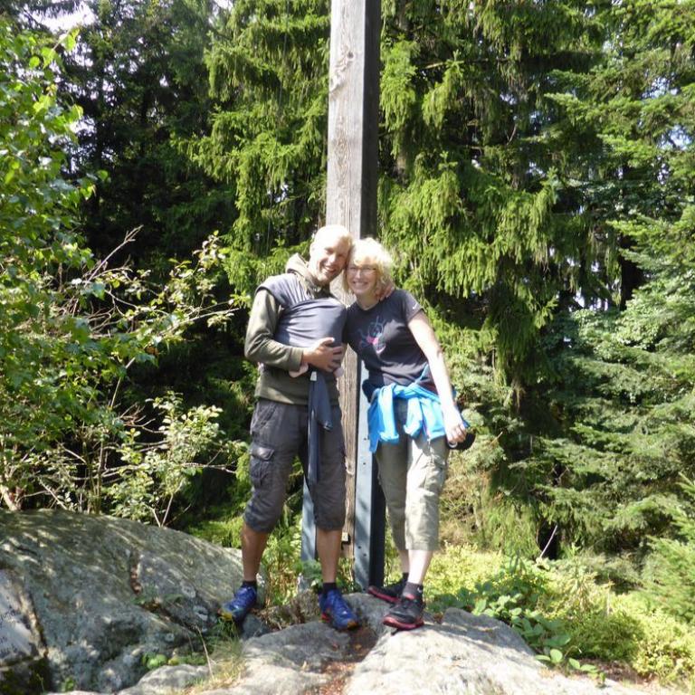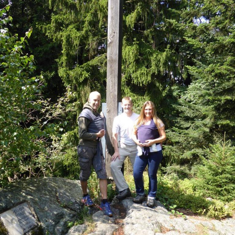 Da Emma durch unsere dreiwöchige Südtirol und Chiemgaureise schon bergsüchtig geworden ist, musste natürlich auch ein heimischer Berg her. Natürlich nicht irgendeiner, sondern der Höchste, also der Große Arber mit seinen 1456 m. Zum ersten Mal durfte die kleine Maus mit ihrer Oma und ihrem Opa wandern. Ich holte meine Eltern ab und wir fuhren Vormittag nach Brennes, wo wir als erstes in eine Hütte gingen, damit Emma ihr 3. Frühstück zu sich nehmen konnte :-) Dann ging es ab ins Tragetuch und die Wanderung konnte beginnen, die Emma wieder komplett verschlief...