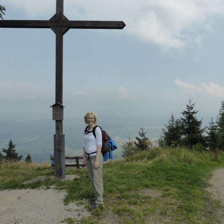 Brigitte, Emma und ich starteten in Rettenbach um den Hirschenstein (1095m) zu erzwingen. Der Weg führte uns idyllisch an einem Bach entlang steil nach oben. Nach 1 1/2 Stunden stand unsere kleine Maus auch schon zum ersten Mal auf meinem Hausberg, wo ich besonders Stolz war.