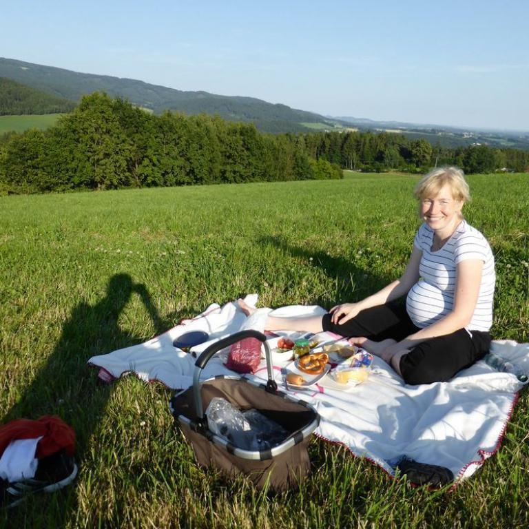 Als ersten Test für unser Tragetuch wählten wir eine kleine Wanderung auf einen meiner Hausberge, den 925 m hohen Schopf. Mit dabei waren die Tichys mit ihrer kleinen Johanna. Vom Grandsberg aus erklommen wir den Gipfel bei sonnigem Wetter. Emma fühlte sich pudelwohl in ihrem Tuch und verschlief die ganze Wanderung :-)