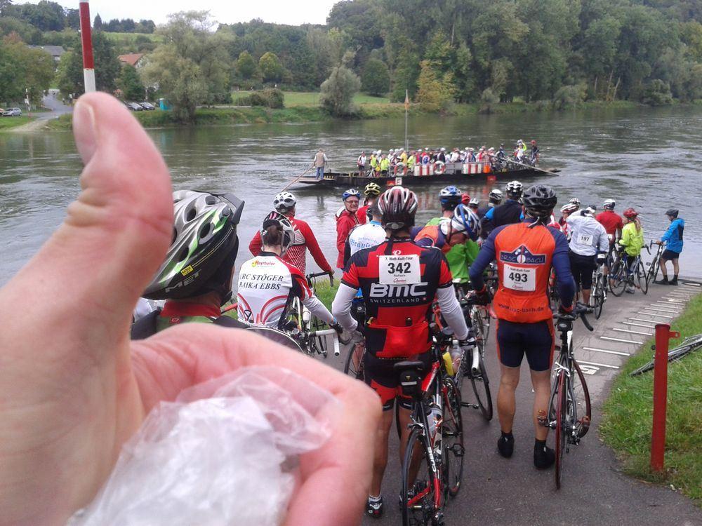 Brigitte`s Bruder Hans und ich starteten am Sonntag beim Fun Event "Regensburger Weltkulturtour" auf der 125 km Strecke. Um 7 Uhr holten wir uns noch die Startunterlagen in Burgweinting und los ging es. Ohne Zeitnahme und Zeitdruck fuhren wir in Unterhaltungstempo bis nach Weltenburg. Von dort setzten wir mit der Fähre über die Donau und kamen auch schon zur ersten Verpflegungsstation, die wieder viele Leckereien zu bieten hatte...