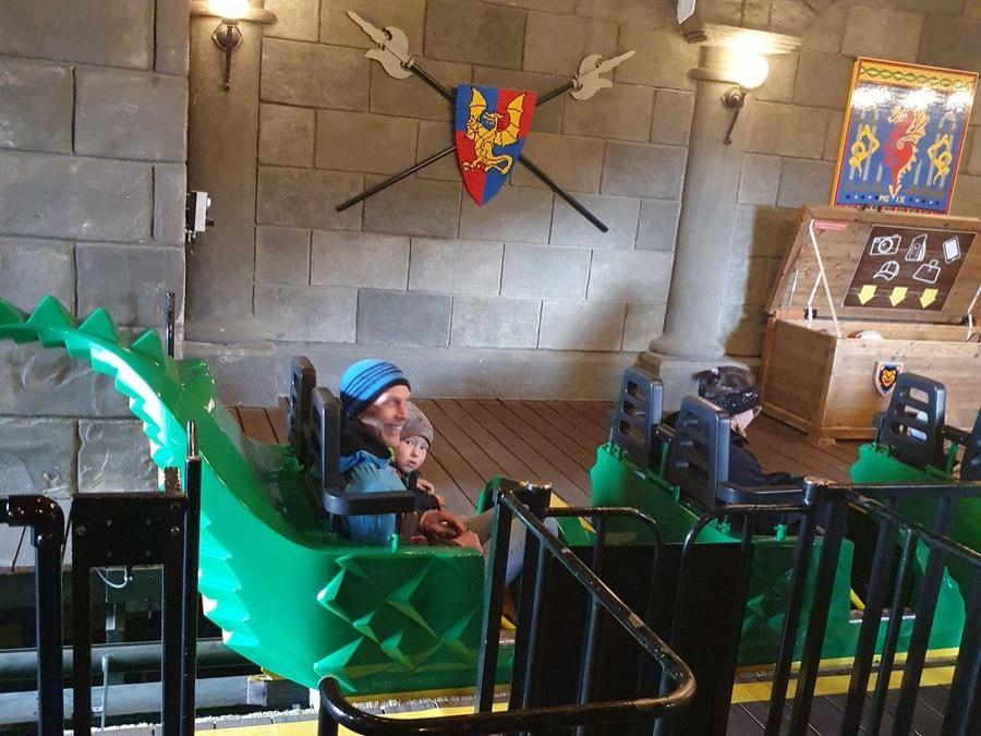 Auf einer Reise in längst vergangene Zeiten führt eine Hängebrücke ins Innere der riesigen Burg, dem Wahrzeichen im Land der Ritter. Auf dem Rücken des Feuerdrachen (Achterbahn) sausten wir in längst vergangene Zeiten.