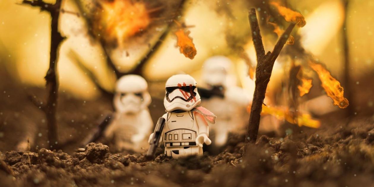 Ritterturnier: Auf einem Lego Pferd reitet man im Galopp durch einen mittelalterlichen Parcours.