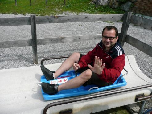Gleich nach dem Mittagessen fuhren wir mit der Marienbergbahn auf 1700 m Höhe und genossen die herrliche Aussicht. Wir kehrten in der Sunnalm bei Sonnenschein und Radler ein. Leider erwischte uns ein kleiner Regenschauer. Ab der Mittelstation war wieder Sonne angesagt und so konnten wir auf der längsten Rodelbahn Tirols den Berg hinunter sausen. Damit auch das sportliche nicht zu kurz kam, hatten wir um 16 Uhr nochmals eine Trainingseinheit. Nach einem entspannenden Saunagang und einer Dusche gingen wir zum Abendessen. Später besuchten manche eine Disco uind andere versuchten sich im Black Jack.