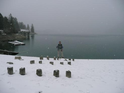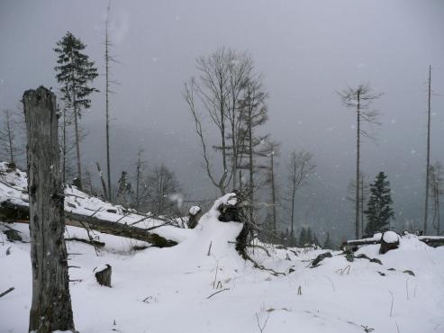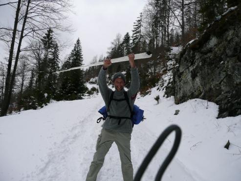 Wir starteten unsere Wanderung direkt von der Pension aus. Wir marschierten Richtung Einsiedl und bogen dann links zum Simetsberg ab. Es lag noch etwas Schnee. Wir wanderten einen kleinen Steig Richtung Gipfel. Leider wurde das Wetter und die Sicht immer schlechter. Als es auch noch stark zu schneien began, entschlossen wir uns wieder umzukehren. Bevor wir wieder zur Pension zurück gingen, machten wir einen kurzen Abstecher zum See. Obwohl es schneite was herunter fallen konnte, startete ich eine 10 km Joggingtour um die Halbinsel Zwergern.