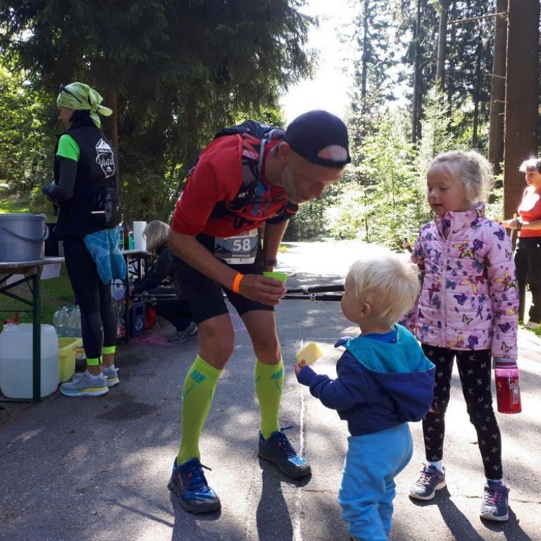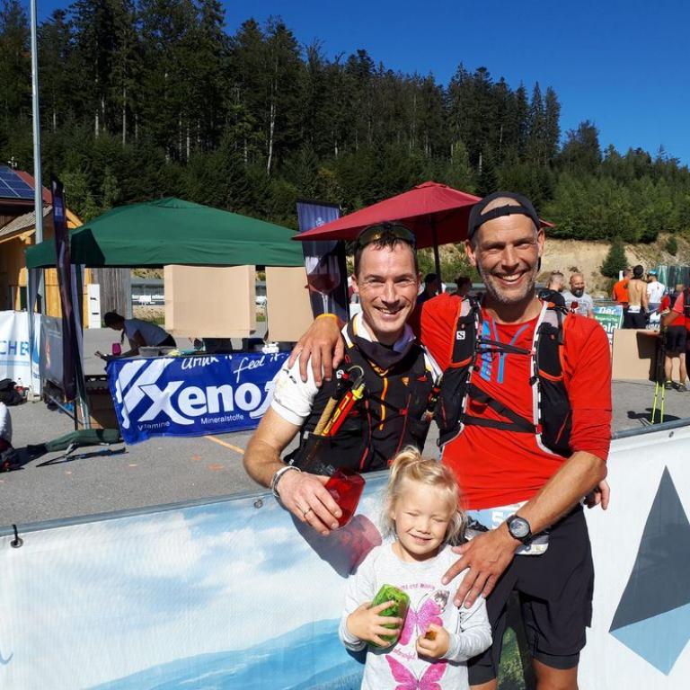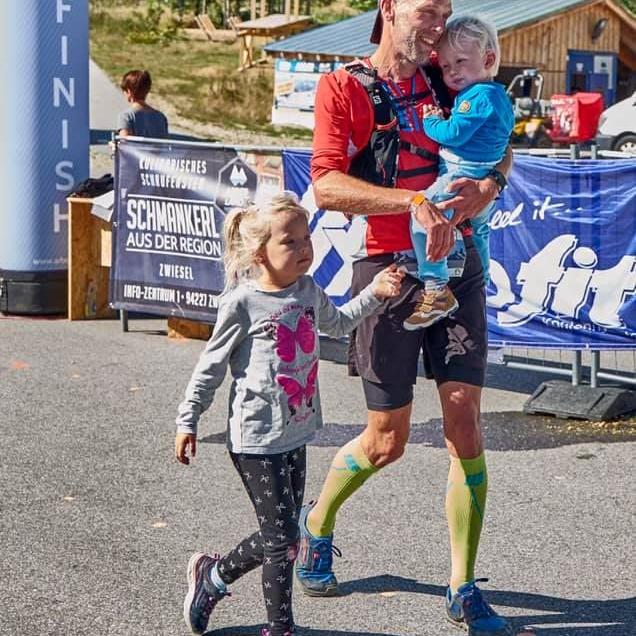 Klar war ich wie immer "heiß" auf den super organisierten Arberlandultratrail, aber trotzdem hatte ich die Tage davor ein schlechtes Gefühl. Ganz klar lag das an dieser Saison, wo ich schon meine Hauptevents 2019 den TAR und Großglockner Ultra krankheitsbedingt ausfallen lassen musste. Auch beim 3. Hauptevent, dem Ironman Frankfurt hatte ich mich nicht mit Ruhm bekleckert :-) Am Freitag holte ich mit Flo die Startunterlagen, damit der Samstag weniger stressfrei beginnen konnte. Florian hatte ich mittlerweile auch schon vom Ultratraillaufen infiziert :-) Die Wetterprognosen konnten nicht besser sein. Ideale Lauftemperaturen und Traumwetter. (Fast) Mitten in der Nacht fuhren Flo, sein Papa und ich zum Skistadion beim großen Arbersee. Wir trafen viele bekannte Gesichter aus der Traillaufszene. Trotz der aktuell noch eisigen Temperaturen waren wir schon heiß auf den Start um 7 Uhr. Langsam wurde es heller und wir bewegten uns in den Startbereich. Nach der Rucksackkontrolle standen wir auch schon an der Startlinie um auf den 62 km Trails um den Arber zu ballern. Wir liefen zuerst wellig in Richtung Talstation der Seilbahnen. Wie immer blieb ich meinem Motto "Aussebrecha, Eibrecha und Erbrecha" treu :-) Ich lief mit den Spezialisten die ersten Kilometer mit, musste aber dann reißen lassen. Auf dem Weg zum Arber ließ ich einige Federn und wurde von einigen eingeholt. Auch ein paar Laufkumpels zogen an mir vorbei, obwohl ich immer noch gut drauf war. Die Sonne ging langsam hinter den Bergen auf und die Stimmung war trotz der Anstrengung gigantisch. Schon war ich auch zum ersten Mal an diesem Tag auf dem Arbergipfel mit seinen 1455 m. Wir liefen in Richtung Mittagsplatzl, wo ich dank meiner schlechten Downhillfähigkeiten weitere Plätze einbüßen musste. Aber egal, ich wollte dieses Rennen als Saisonabschlussrennen erhobenen Hauptes ins Ziel bringen. Wieder kamen wir ins Skistadion, von wo es weiter steil bergab ging. Endlich kam der Ballerwinkl :-) Ballern bis zum bitteren Ende. Ich lief den Flusswanderweg teilweise mit einer 3:50 er Pace und zog an allen die mich vorher überholt hatten, vorbei. Immer wieder konnte ich auf dem Weg über alte Glashüttensteige Plätze gut machen um zum ehemaligen Glashüttenstandort Schachtenbach hochzudrücken. Von hier sauste ich weiter zum Silberberg, wo ich auf einen ähnlich starken Mitstreiter traf. Wir liefen ein schnelles Tempo, konnten uns aber noch gut unterhalten, so dass die Kilometer nur so verflogen. Vorbei am Bretterschachten liefen wir in Richtung Rieslocher Wasserfälle. Mein Mitstreiter zog davon und ich konnte leider sein Tempo nicht mehr halten. Kurz vor dem Ziel werde ich ihn aber noch einkassieren :-) Bodenmais kam immer näher, denn dort wartete bei Kilometer 47 meine Familie auf mich. Noch 500 m bis zur Verpflegungsstation. Als erste sah ich Emma, dann Timi und Brigitte. Da ich wusste das mir Flo, Mich, Christian, Markus und viele weitere auf den Fersen waren, konnte ich hier nicht viel Zeit verbringen. Ich trank Cola und nahm Salz um Krämpfe zu vermeiden. Meine Füße waren noch relativ fit, was mich wunderte. Dieses Jahr hatte ich keinen einzigen Lauf über 30 Kilometer absolviert. Und auch über 20 Kilometer Läufe hielten sich in Grenzen. Aber jetzt kam noch der 800 Hm Anstieg zum zweiten Mal an diesem Tag auf den Arber. Dazwischen mussten wir auch noch den kleinen Arber überwinden. Die Herbstsonne war noch ziemlich stark und mir rann der Schweiß aus allen Poren. Am Anstieg zum kleinen Arber konnte ich einen weiteren Platz gut machen. Die Top 20 sollte ich schon erreicht haben. Vielleicht geht ja noch der ein oder andere Platz nach vorne. Über den Goldsteig lief ich vorbei an der Chamer Hütte und von dort weiter auf der Langlaufloipe, bis ich links auf den Arber Treppenweg abzweigen musste. Es waren bei dem herrlichen Wetter viele Wanderer unterwegs, die aber alle Verständnis für die nach Schweiß stinkenden "Verrückten" hatten, und immer wieder den Weg freimachten. Zum zweiten Mal stand ich auf dem König des Bayerischen Waldes mit traumhafter Aussicht, die mich aber zu diesem Zeitpunkt herzlich wenig interessierte :-) Noch 4 Kilometer anspruchsvoller Downhill über die Arberseewand waren zu meistern. Mehrmals stolperte ich in dem steinigen Trail, konnte mich aber immer noch gerade so auf den Füßen halten. Meine beiden Waden fingen an zu krampfen aber ich lief noch und das nicht schlecht. Endlich war ich aus dem Trail und kam auf eine Forststraße. Ich gab nochmals alles und konnte auch einen weiteren Platz gut machen. Ich bog in die Zielgerade in Richtung Stadion. Voller Freude sah ich meine Familie. Ich nahm Timi auf den Arm und Emma an die Hand und strahlend liefen wir gemeinsam durch das Ziel. Papa im Glück hieß es auf der FB Veranstalterseite und das stimmte. Der schönste Augenblick ist immer mit seinen Liebsten durch das Ziel zu laufen. Und mit dem Ergebnis konnte ich mehr als zufrieden sein. Ich holte mir einen 13. Gesamtplatz von 124. Startern, bei einem starken Starterfeld in 7h 16 Minuten. Leider wurde ich in der Altersklasse nur vierter und ein Treppchenplatz wurde mir verwehrt :-) Was mich auch sehr freute war, das mein "Lieblingsgegner" und Trainingspartner Flo seinen ersten Ultralauf mit einer super Zeit finishen konnte. Respekt Flo, so kann es weitergehen :-)