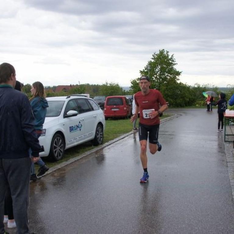 Es läuft doch :-) 3. Gesamtplatz beim Beucherlinger Volkslauf auf der nicht ganz 10 km Strecke in 35:36 min. In der Altersklasse holte ich mir den Sieg. Trotz der trainingstechnisch und gesundheitlich durchwachsenen letzten Woche konnte ich eine 3:47 Pace halten und war sogar 8 Sekunden schneller als bei meinem Sieg vor 2 Jahren. Nun von vorne :-) Bei Sauwetter fuhr ich nach Beuecherling, wo ich zum 3. Mal beim 9,8 km Hauptlauf starten wollte. Vor zwei Jahren konnte ich sogar einen Sieg einfahren. Da ich diese Woche dank einem Magen-Darm Virus kaum trainieren konnte, rechnete ich mir nicht viel aus. Aber ballern machte immer Spaß :-) Es waren einige sehr gute Athleten am Start, wie der Ultracyclist Bernhard Steinberger und die beiden Toptrailläufer Michael Münsterer und Christoph Kumschier. Wie bestellt fing es nach dem Startschuß so richtig zum Schütten an :-) Egal ich lief verhalten los, stellte aber fest, das ich doch ganz fit war. Schnell war ich an 3. Position, wurde aber von zwei Läufern verfolgt. Die beiden Trailläufer Michael und Christoph zogen mit ein paar Metern Abstand davon. In Runde 2 war der Abstand nach hinten noch sehr gering. Nach vorne hatte ich keine Chance mehr. Aber den 3. Platz wollte ich nicht hergeben und somit versuchte ich noch eine Schippe drauf zu legen, was mir auch gelang. Der Abstand wurde größer und in der 4. Runde konnte ich etwas zurückschalten. Nach vorne war nichts zu holen und die Läufer hinter mir waren weit weg. Als 3. Gesamt und 1. in der Altersklasse lief ich dann nach 35:36 Minuten ins Ziel. Ole, ole ich war sogar 8 Sekunden schneller als bei meinem Sieg vor 2 Jahren. Somit konnte ich mit meiner Leistung ganz zufrieden sein :-)