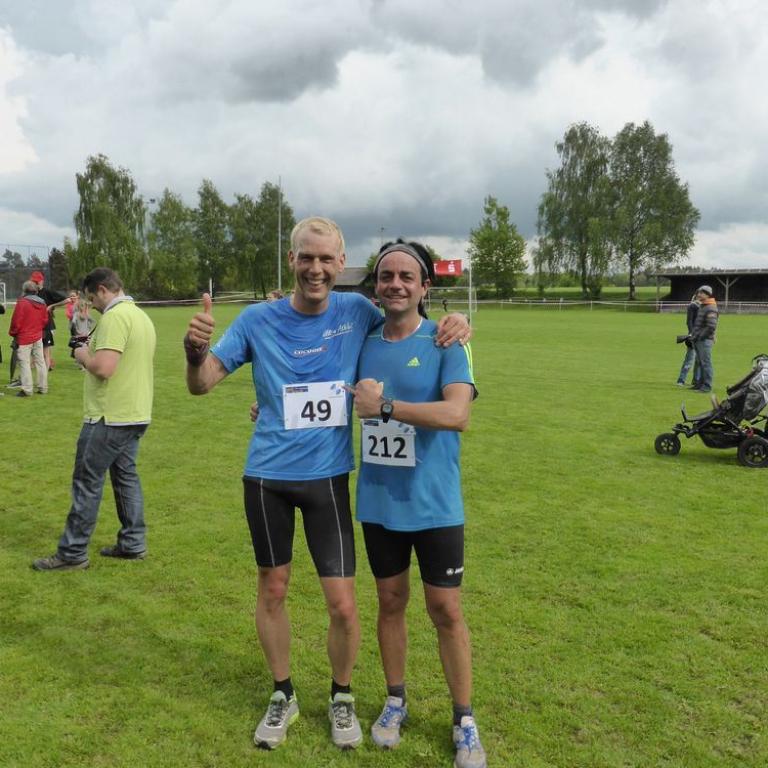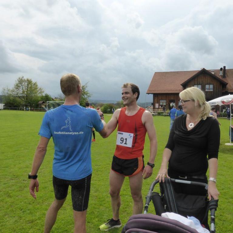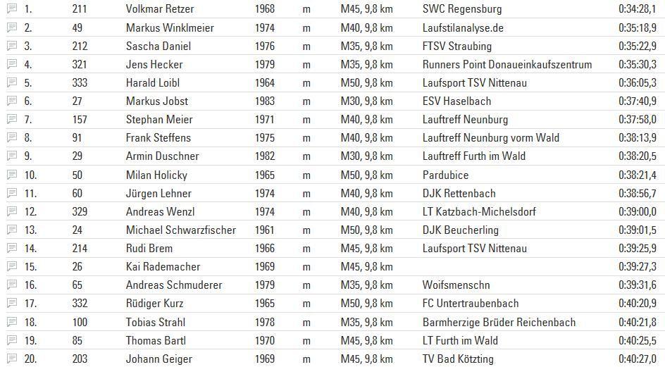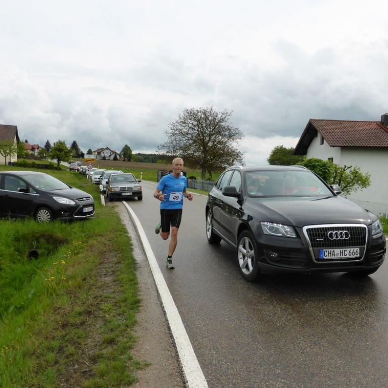 Mal schauen wie ich aktuell drauf bin, so bin ich mit meiner Familie nach Beucherling gefahren. Auf dem Programm standen 9,8 km beim Beucherlinger Volkslauf. Erst kurz vor dem Start hörte es zu regnen auf und es wurde relativ schwül. Nach dem Startschuß ging es wie immer gleich zur Sache. Gleich nach den ersten Metern setzte sich Volkmar Retzer ab. Ich folgte ihm mit Abstand und mir im Genick saßen Sascha und Jens. Vier Runden waren zu laufen. Fast alles Straße, nur ein paar Meter waren auf einem matschigen Feldweg zu bewältigen. Nach der ersten Runde war ich noch an zweiter Stelle, aber auf einem Bergabstück wurde ich von Sascha und Jens überholt. Kurzzeitig konnte ich dran bleiben, aber musste dann reißen lassen. Mitte der dritten Runde waren die beiden teilweise schon außer Sichtweite und der 5. wollte mich auch schon überholen. Man darf nie aufgeben und das war gut so, also fand ich wieder meinen Kampfgeist und fing auch an zu kämpfen und schüttelte meinen Verfolger ab und wurde selbst zum Verfolger. Mitte der 4. und letzten Runde holte ich den Drittplazierten ein und zog an ihm vorbei. Auch Sascha war nur noch 100 m vor mir. Ich legte nochmals zu und lief teilweise eine 3:20 er Pace. Dann ging es auf die Zielrunde in Richtung Sportplatz, wo mich Emma, Brigitte, Tom und Monika anfeuerten. Nun gab ich alles und schon war ich auf dem 2. Platz. Den verteidigte ich dann die letzten 200 Meter bis ins Ziel. Ole Ole Ole 2. Gesamtplatz und 1. in der Altersklasse in 35:18 min auf 9,8 km. Ich war natürlich total zufrieden mit der Leistung, schließlich lief ich knapp 10 km in einer Pace von 3:45.