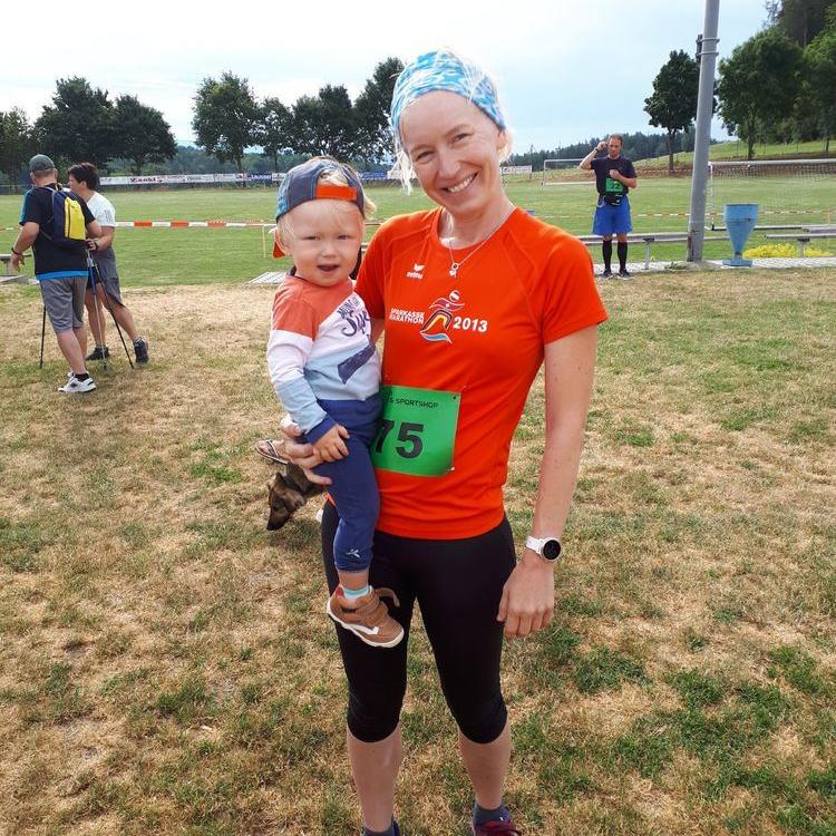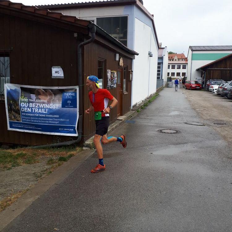 Ohne Vorbelastung gehe ich ja selten in ein Rennen. So auch beim perfekt organisierten 1. Büscherltrail des SV Falkenfels. Meine Kumpels Martin und Tobi sind ja seit Monaten groß beschäftigt den Trail zu organisieren und auszuarbeiten, was ihnen bestens gelang. Am Samstag war ich noch auf Klettertour zur Ehrwalder Sonnenspitze und vor einer Woche finishte ich beim Hitzerennen in Frankfurt meinen 7. Ironman. Aber den Traillauf meiner Kumpels wollte ich mir nicht entgehen lassen. Ganz klar war ich trotz schweren Füßen, motiviert bis dort hinaus. Zusammen mit Brigitte und vielen TAR Kumpels stand ich am Start zum 1. Büscherltrail, der von Meier Lauf & Sportshop unterstützt wurde und wo die Startgebühr für einen guten Zweck gespendet wird. Brigitte lief die 8 km 220 Hm Strecke und ich die 16 km 500 Hm Strecke und unsere kleine Maus Emma startete beim 1 km Bambini Lauf, der aber ohne Zeitnahme war. Da dieser Zeitgleich mit den Hauptläufen war, durften Opa und Omi unsere Tochter anfeuern :-) Es waren viele Trailrun Spezialisten am Start, aber insgeheim hoffte ich auf einen Treppchenplatz. Nach dem Startschuss liefen wir in Richtung Steinberg hoch. Das Tempo war extrem hoch und ich versuchte an Tobi, der Führte, dran zu bleiben, was mir nicht lange gelang. Dann wurde ich noch von einem Trailrunspezialisten von Hoka überholt und auch Christoph Kumschier, mit dem ich mir schon in Beucherling und beim Kaitersbergtrail ein Duell lieferte, zog an mir vorbei. Sch , nun war ich vierter, aber Christoph war den 300 Hm Anstieg zum Büscherlturm in Reichweite. Bergab hatte ich gegen ihn leider nichts zu melden und verlor den Anschluss. Ich lief über Wald und Wiesentrails auf dem Goldsteig in Richtung Kesselboden. Die Pace konnte ich ziemlich hochhalten. Meistens lag ich unter 4 min / km. Christoph war irgendwann außer Sichtweite und hinter mir spürte ich schon den Atem vom Ultracycling Weltmeister Bernhard und meines Kumpels Martin. Aber den 4. Platz wollte ich nicht mehr hergeben und ballerte bergab nach Falkenfels. Als 4. Von 30 Herren kam ich dann nach 1h 13 min 54 sec ins Ziel. Auf der 16 km 500 Höhenmeter Trailstrecke schaffte ich eine 4:36 Pace und konnte trotz des undankbaren 4. Platzes sehr zufrieden sein. Auch Brigitte schaffte eine super Platzierung auf der 8 km Strecke und meine kleine Maus Emma ballerte beim 1 km Bambinilauf ins Ziel :-) Bin stolz auf euch Mädels