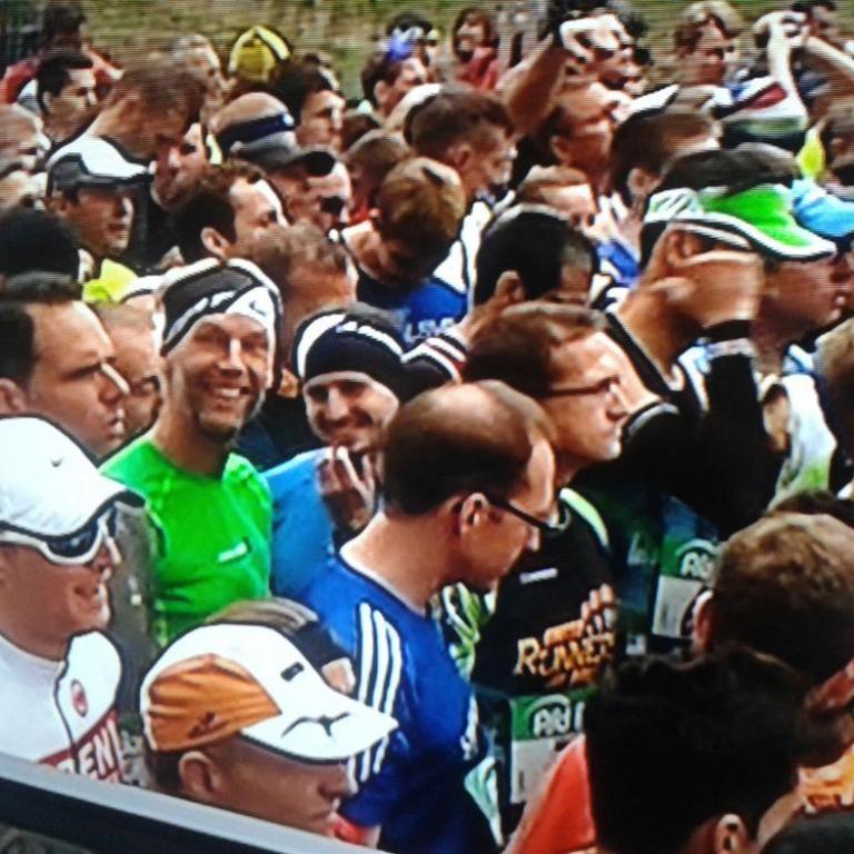 Nach meinem Ironmandesaster und ärgerlichem DNF auf Mallorca vor 4 Wochen bekam mein Coach die schwierige Aufgabe mir ein Marathon Crashtraining zu erstellen. Also standen mehrere Kerneinheiteneinheiten wie z.B. 5x 3000m und 4x5000m im Halbmarathontempo und zwei längere Läufe über 30 km und einige kürzere Einheiten in den letzten drei Wochen auf dem Programm. Da ich ja voll auf Triathlon ausgelegt war und das marathonspezifische Training viel zu kurz kam, erklärte mir Ralf noch 5 Tage vor dem Wettkampf eine realistische Sub 3:10 Strategie, was für mich neue Bestzeit bedeuten würde. Aber schon während des Gesprächs entschied ich für mich selbst die 2:59 anzupeilen. No Risk No Fun, sonst wäre ich ja nicht Winklmeier Markus. Also fuhr ich dann mit Jupp am Samstagmittag in Richtung Frankfurt. Unser 4 Sterne Mercure Hotel lag ca. 15 Gehminuten vom Marathonzentrum in der Messe und vom Start und Ziel entfernt. Wir holten unsere Startunterlagen ab und gingen zur Pastaparty. In der riesigen Festhalle war ganz schön was los. Wir sahen den aktuell, besten deutschen Marathonläufer Arne Gabius beim Interview. Hier in Frankfurt war alles vertreten was Rang und Namen hatte, incl. Jupp und mir. Später im Hotelzimmer packten wir noch alles für den morgigen Lauf zusammen. Eigentlich war ich mal wieder drauf und dran einen Anfängerfehler zu begehen. Ich wollte morgen mit nagelneuen Schuhen und Socken laufen. Da ich bei einem Lauf unter der Woche feststellte, dass meine Straßenlaufschuhe ihre Dämpfung verloren hatten und meine Knie nach ein paar Kilometern zu schmerzen begannen, musste ich kurzfristig zum Laufschuhverkäufer meines Vertrauens, www.meiers-sportshop.de Dank bester Beratung entschied ich mich für einen gut gedämpften New Balance, welche auch eine top Wahl waren, wie sich morgen herausstellen würde. Die Nacht war etwas länger als sonst, da die Uhr um eine Stunde zurück gestellt wurde. Ausgeschlafen marschierten wir dann am Vormittag wieder zum Messebereich. Ich ließ nochmals meinen Chip überprüfen, zog mich dann langsam um und gab den Wechselbeutel ab. Um halb 10 Uhr gingen Jupp und ich dann in die Startzone. Wir standen im vordersten Bereich "Asics" mit allen Läufern, die eine erwartete Zielzeit unter 3h 15min angegeben hatten, plus der ganzen Topläufer. Hier wurden wir dann vom Fernsehen entdeckt. Direkt neben uns filmte das HR3 Team Dieter Baumann und einen Reporter, die den Marathon kommentierten. Zuhause konnte also jeder die Topläufer Jupp und Markus live im Fernsehen bestaunen.