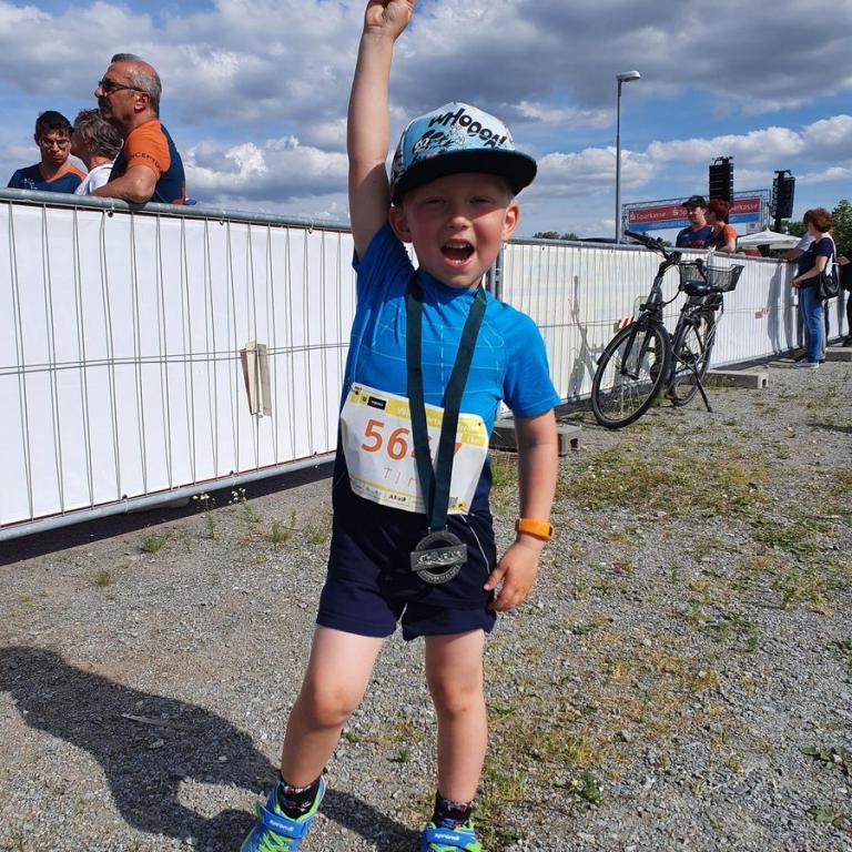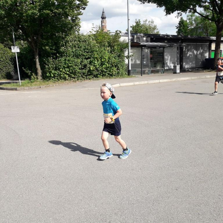 Der kleine Mann lief im letzten Jahr beim Innsbruck Alpine Trailrunfestival seinen ersten, kleinen Wettkampf, damals ohne Zeitnahme. Dieses Mal sollte es aber ernst werden. Es gab eine offizielle Zeitnahme und dazu noch 298 Konkurrenten. Die Trainerinnen von Timis Laufverein, dem FTSV Straubing, waren so nett und begleiteten die kleinen Mäuse auf der Laufstrecke. Nach dem Startschuss gab es ein Gedränge und Timi ging leider in der Herde ziemlich unter. Er war einer der Kleinsten, denn nur 6 Läufer waren ebenfalls Baujahr 2018. Ansonsten waren alle älter, teilweise bis zu 5 Jahre. Timi kam aber immer besser in das Rennen und gab im Zielsprint alles was in ihm steckte. Wie ein großer ging er zur Zielverpflegung und freute sich sehr über seine gewonnene Medaille. Auch wenn nur der 294. Platz von 299 heraussprang, waren wir alle mega Stolz auf den kleinen, 4-jährigen Mann, der den Kilometer in 7:30 Minuten schaffte. Mach weiter so Timi...