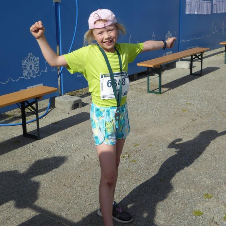 Leider konnte ich die kleine Maus nach dem Startschuss bei den vielen Läufern nicht verfolgen. Somit wartete ich nach ca. 1,5 Kilometer mit Opi und Omi auf Emma. Die ersten älteren Läufer kamen schon vorbei und ich konnte meinen Augen nicht trauen, mittendrin meine 7-jährige Emma. Sie kämpfte, biss und gab alles. Grinsend lief sie nach 10:40 Minuten und 2 Kilometern über die Ziellinie.