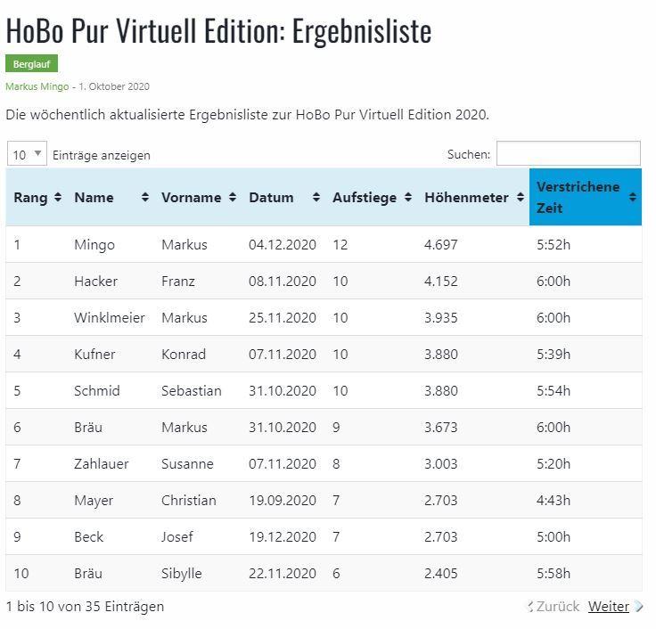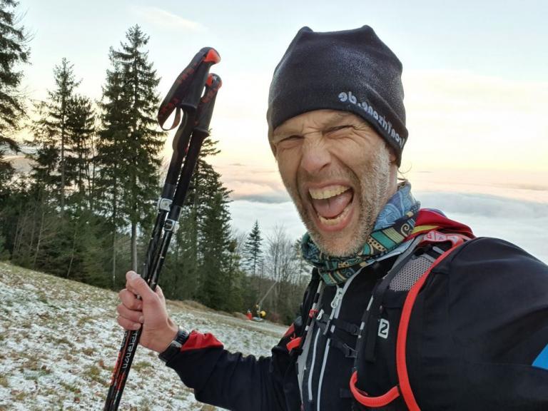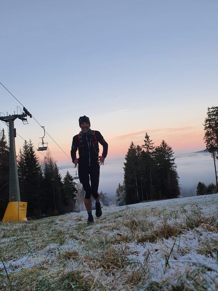 Natürlich ließ ich mir in dieser wettkampfarmen Zeit die HoBo Virtuell Edition von xc-run nicht entgehen. Da ich ganz klar mit vollem Einsatz das Rennen absolvieren wollte, schob ich den Startpunkt immer wieder um eine Woche. Aber diesmal passte es mir zeitlich optimal und auch das Wetter sollte mitspielen. Es hatte zwar an der Talstation -3 Grad, aber die Sonne lachte mir entgegen und das blieb auch so 6 Stunden lang. Nachdem die Kinder im Kindergarten und Schule waren, fuhr ich zur Talstation der Hohen Bogen Bahn. Lange wollte ich nicht trödeln, da es zu kalt dafür war :-) im Laufrucksack hatte ich 1 Liter zu trinken, eine Semmel, 3 Geels und 2 Riegel. Das sollte für 6 h Stunden reichen und es reichte auch. An der Talstation deponierte ich noch einen halben Liter Zitronenschorle. Es gibt viele Möglichkeiten zum Aufstieg. Direttissima lief bzw. stieg ich die Liftschneise 1,3 km und 380 Höhenmeter nach oben. Zum Schluss war es sehr steil und anstrengend bis ich am Gipfelkreuz auf 1079 m ankam. Beim ersten Mal benötigte ich knapp über 20 Minuten für den Aufstieg. Ich lief den Aufstiegsweg zurück, stellte aber fest, dass es dank der vereisten Strecke ziemlich rutschig war und ich auch mehrmals ausrutschte. An der Talstation drehte ich wieder um und stieg ein weiteres Mal nach oben. Jetzt entschied ich mich, die etwas längere aber flachere Skipiste nach unten zu laufen. Dadurch war ich bergab etwas schneller. Fast jedes Mal benötigte ich ca. 11 Minuten für den Abstieg und der Aufstieg hielt sich zwischen 20 und 25 Minuten. Nach dem 5. Aufstieg wurden die Füße schwerer und ich entschied mich gegen die steile Direttissima Variante und stieg über die längere aber flachere Skipiste bis zum Berggasthaus. 3 Stunden war ich nun unterwegs. Mein Körper verlangte nach Energie in Form von einer Semmel und Geel. Die Aufstiege wurden härter und härter, aber ich spulte Meter für Meter und Höhenmeter für Höhenmeter ab. Langsam fing ich zu rechnen an, 10 Aufstiege sollten möglich sein. Mehr hatte bisher noch keiner geschafft. 5h 15 min hatte ich hinter mir und ich startete zum letzten möglichen Aufstieg. Da ich noch immer genügend Energie in mir hatte drückte ich etwas auf die Tube und konnte nochmals zurück ins Tal laufen um den 11. Aufstieg zu starten. Ich hatte noch 6 Minuten und schaffte es bis zur Mittelstation. Yheaaa ich hatte 10 ½ Aufstiege innerhalb 6 Stunden geschafft. Insgesamt kam ich auf 3935 Höhenmeter mit 29,6 Kilometer. Ich war sehr zufrieden, da ich aktuell auch an 2. Stelle lag. Erschöpft wanderte ich zurück ins Tal, zog mich um und fuhr nach Hause. In Kötzting musste ich mich an einer Tankstelle mit Cola und Twix eindecken, damit ich die restliche Strecke nach Hause mit dem Auto schaffte :-)