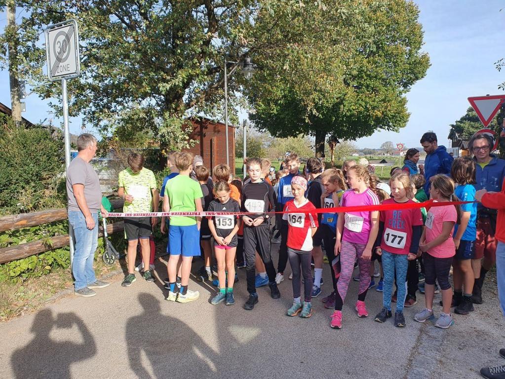Zusammen mit einer Trainerin des TSV Marquartsteins gab es ein gemeinsames Auswärmtraining für die Kinder. Das Wetter konnte nicht besser sein. Sonne, blauer Himmel und angenehme T-Shirt Temperaturen. Um 9:30 Uhr fiel der Startschuss für die kleinen Trailläufer und Trailläuferinnen. Emma sauste los und ich ebenfalls, da ich ja auch zurück ins Ziel musste, um meine kleine Heldin zu empfangen.
