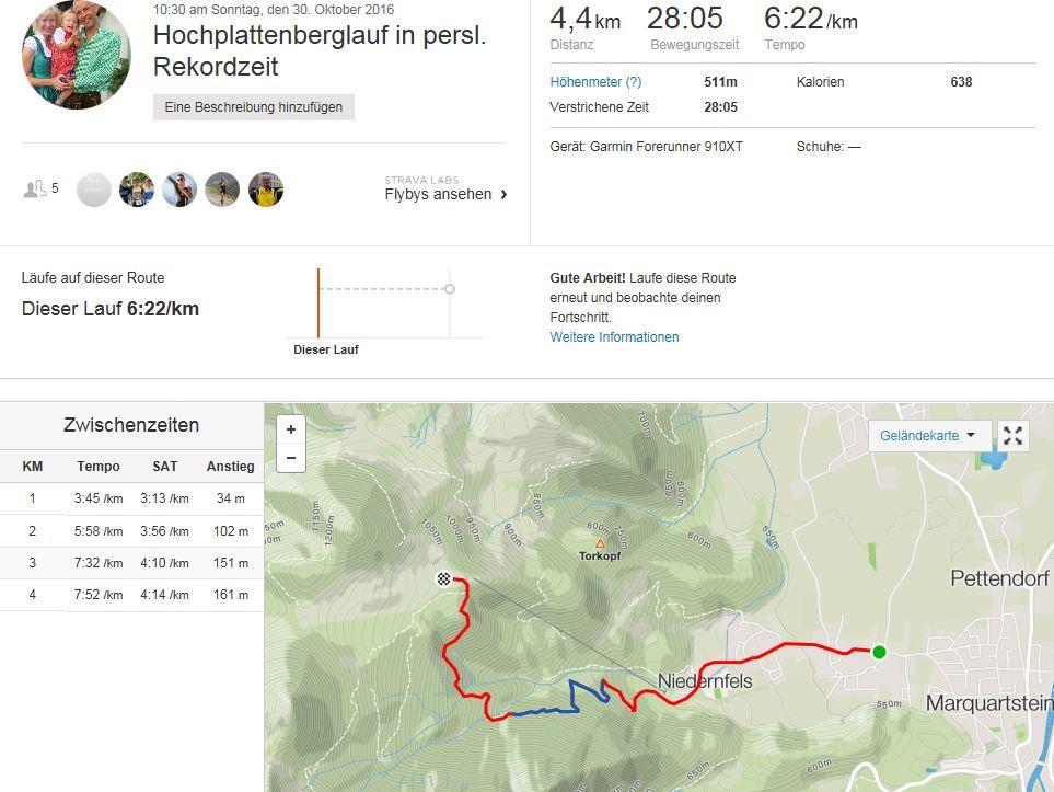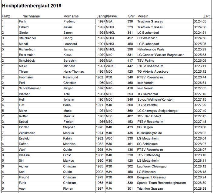 Wenn i scho mal da bin in der Gegend, wollte ich auch beim Hochplattenberglauf mitmachen :-) Vor 5 Jahren startete ich schon einmal hier. 140 Bergläufer, vor allem viele Spezialisten aus der Chiemgauer Ecke standen mit mir am Start in einem Ortsteil von Marquartstein unterhalb der Talstation der Hochplattenseilbahn. Emma und Brigitte standen in der Nähe des Startes und fuhren dann mit der Seilbahn zur Bergstation, wo auch das Ziel war. Auf dem ersten, ziemlich flachen Kilometer übernahm ich die Führung und sah schon den Sieg vor mir, aber dann wurde ich von einigen Berglaufspezialisten überholt :-) Am Berg wurden mir die Grenzen aufgezeigt :-) Ich kämpfte mich nach oben und konnte trotz der Steilheit noch immer einen 6 er Schnitt halten. Kurzzeitig fiel ich auf einen 7 er Schnitt zurück und verlor weitere Plätze, aber nachdem mich die 2. Frau überholt hatte, packte mich der Ehrgeiz und ich gab auf dem letzten Kilometer nocheinmal alles und konnte dieses Duell auf den letzten Metern für mich entscheiden. Nicht nur das, ich machte auch noch 7 Plätze gut :-) Somit konnte ich mit meinen 28:02 Minuten auf 4,5 Kilometer und 550 Hm und Platz 20 eigentlich zufrieden sein. Ich war schließlich um über 1 1/2 Minuten schneller als vor 5 Jahren und das aus der Saisonpause heraus :-)