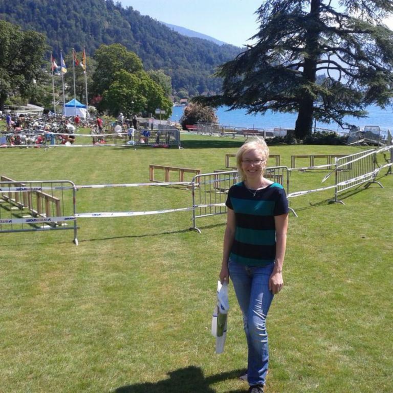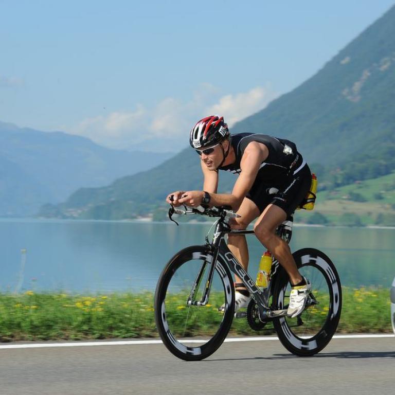 Um halb 5 mussten wir raus aus den Federn. Meine Nase war zu, der Hals schmerzt, na toll, aber ich entschied mich zu starten und eventuell auszusteigen. Nach kurzem Frühstück fuhren wir gemeinsam nach Thun, wo der Schwimmstart war. Um kurz vor 6 Uhr trafen wir dort ein. Es war noch dunkel und ich hoffte das es bis um halb 7 Uhr heller wurde, da ich nur eine dunkle Schwimmbrille dabei hatte. Um kurz vor halb 7 standen wir auch schon im Neopren am Start. Wasserstart war angesagt. Startschuß und Go zum bisher härtesten Event in meinem Leben. Ziemlich schnell zog sich alles auseinander. Es war schon relativ hell, so das ich bei dem klarem Wasser sehr gut sehen konnte. Ich fand eine Schwimmerin, die ungefähr mein Tempo hatte und hielt mich fast die gesamten 3,1 Kilometer in ihrem Wasserschatten. Eigentlich ging es ganz gut, aber der Hals kratzte noch etwas. Nach 59 Minuten kam ich dann in Oberhofen unter Beifall der Zuschauer aus dem Wasser. Raus aus dem Neo und rauf aufs Bike. Gleich nach 200 Metern ging es steil nach oben, so das ich vor lauter schalten und Schuhe einklicken an einen Zaun fuhr. Irgendwie konnte ich mich noch auf dem Rad halten und weiter ging es. Meine Füße fühlten sich schwer und unausgeruht an. Ganz klar, den Roadbikepart mache ich noch aber dann steige ich aus. Heute ist kein Tag für ein Finish....