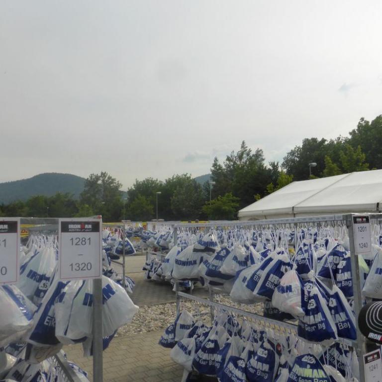 Mit 2 Pausen kamen wir relativ zügig nach gut 5 Stunden im Hotel Sille am Wörthersee in Reifnitz an. Ich packte alles ins Zimmer und fuhr eine kurze Runde mit dem Rad um den neuen Reifen zu checken. Wir trafen dann die anderen, hochmotivierten Athleten von Laufstilanlyse und natürlich meinen Coach Ralf. Am Samstag fuhren wir mit den Jupps zur Wettkampfbesprechung und ich holte noch meine Startunterlagen. Es war heute ganz schön warm. Wir hatten über 30 Grad. Nur gut das für den Ironmantag Abkühlung vorhergesagt wurde. Am Nachmittag legte ich noch eine kurze Schwimmeinheit mit Neo im Wörthersee ein. Später trafen wir uns dann zu einer 20 minütigen Radausfahrt. Gleich danach checkten wir Rad und Wechselbeutel in der Wechselzone ein. Ich versuchte mir die Position meines Rades und Wechselutensilien einzuprägen, was mir anscheinend nicht so wirklich gelang :-) Am Abend saßen wir alle noch beim Abendessen zusammen und Ralf versuchte nochmals jeden in Einzelgespräche zu motivieren und die Rennstrategie durchzugehen. Um 21 Uhr legen wir uns dann schlafen. Leider kratzte mein Hals noch immer und die kurze Nacht wurde sehr unruhig...