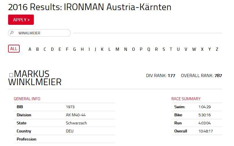 Ironman Austria 2016 ist nun Geschichte. Dies war mein 5. Ironman und mein 4. Finish. Weiß nicht genau ob ich den Wettkampf positiv oder negativ sehen soll. Bin mit vielen Qualen nach 10 Stunden 48 Minuten und 17 Sekunden ins Ziel. Positiv war natürlich das Finish auch wenn ich meine angepeilte Zeit weit verfehlt hatte dafür hielten sich meine Hüftprobleme in Grenzen :-) Swim & Bike & die ersten 18 Run Kilometer waren so ziemlich das was ich mir vorstellte, aber dann stand der Mann mit dem Dampfhammer an der Ecke und schoß mir dermaßen eine. Jetzt wird es negativ :-) Von einer Sekunde auf die andere war kein Lauf mehr möglich, die Füße schmerzten, Magenproble, Dixiklobesuch, Kreislauf am Ende, nur noch wandern möglich. Aber im Ziel kam gleich der Gedanke, wann gibt es eine neues Spiel und neues Glück :-) Jetzt sind wir erstmal in Kroatien auf der Insel Krk zum Erholen :-) Vielen Dank an meine besten Mäuse der Welt, Emma und Brigitte Winklmeier für die hammermäßige Unterstützung und natürlich vielen Dank an den besten Coach Ralf Preissl für die Motivation, Trainingspläne und viel, viel Geduld :-)