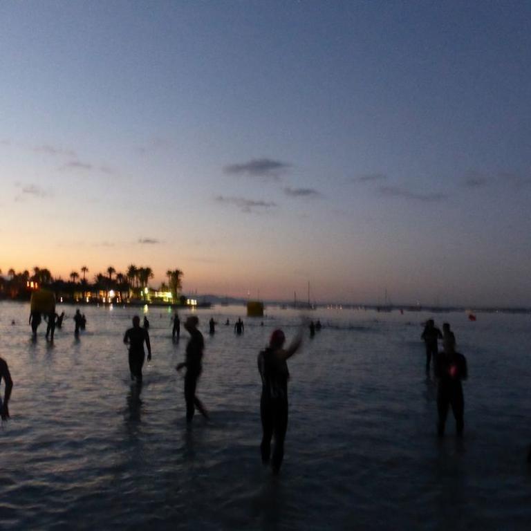 Ironman Mallorca - Der perfekte Tag, sollte es eigentlich so werden, aber es kam anders, viel anders als erwartet, mein erster DNF (Did Not Finish) in meiner 9 jährigen Wettkampflaufbahn sollte es werden. Und wie fühlt man sich danach? Einfach hundeelend, wie bei einem bodenlosen Sturz in die Leere, ohne Perspektive. Nun mal kurz von Anfang an: Schon die Tage vor dem ersehnten Tag wurde ich immer optimistischer und fühlte mich super fit. Die Wochen vor Mallorca hatte ich zuerst keine großen Erwartungen, da mir in diesem Jahr die Rad und Schwimmkilometer abgingen, meine Schwimmleistung miserabel war und der Druck auf die Pedale fehlte. Aber irgendwie schaffte ich es doch noch mit Hilfe von Ralf und vielen perfekten Kerneinheiten in den letzten 2 Wochen meine Leistung gewaltig nach oben zu schrauben. Und die Taperingwoche mit Laufstilanalyse.de hier auf Mallorca beflügelte mich noch zusätzlich. Meine Schwimmleistung war wieder auf Höchststand und der Raddruck ungewöhnlicher Weise stark, so wie er sein sollte. Lauftechnisch war ich dieses Jahr sowieso absolut auf einem Topniveau. Hochmotiviert stand ich also um viertel nach 5 am Wettkampftag auf. Mit Hans ging ich in die Wechselzone um unsere Räder nochmals zu überprüfen und die Getränkeflaschen am Rad zu deponieren. Zurück im Hotel waren auch schon meine größten Fans Brigitte und Emma wach :-) Da Neopren erlaubt war, zog ich ihn schon im Hotel an und wir gingen dann gemeinsam an den 200 m entfernten Strand bzw. Start. Hier trafen wir viele Athleten von der Laufstilanalyse. Wir wünschten uns Glück und pünktlich zum Sonnenaufgang starteten auch schon die Profis. Wir kamen 7 Minuten später dran. Noch ein Bussi für Emma und Brigitte und schon stand ich in der Startzone. Zum ersten Mal gab es den Rolling Start. Man stellte sich zu der erwarteten Schwimmzeit und ging dann langsam in Richtung Start. Erst wenn die Zeitmatte überquert wurde, startete auch die Zeitnahme. Trotzdem war es ziemliches Gehaue und Gewusel. Ich ging leider erst ziemlich spät bei den 1h-1h15min Athleten ins Wasser und da waren anscheinend nur Nichtschwimmer am Start. Ich war nur am kämpfen und irgendwelche Gassen zu suchen um an den vielen langsameren Schwimmern vorbei zu kommen. Erst nach der ersten Wende bei weit über einem Kilometer ging es dann einigermaßen und ich konnte unbeschwert durch das Wasser pflügen. Nach ca. 2 Kilometern gab es einen kurzen Landgang und weiter ging es durch das salzige Wasser. Ich kam gut voran und bis ich mich versah lief ich auch schon in Richtung Wechselzone. Ich schaute auf meine Uhr. Hammer, 1h 02 Minuten, beste Schwimmzeit beim Ironman ever. Meine Motivation stieg ins unermessliche.