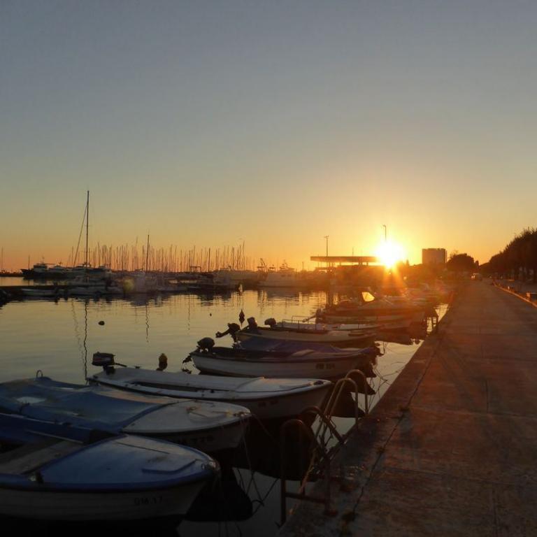 Damit ich mir meinen Traum erfüllen kann, beim Mont Blanc Ultra auf der 170 km Strecke zu starten, benötige ich Qualifikationspunkte. 5 habe ich im letzten Jahr auf der 101 km Strecke beim Mont Blanc bekommen und in diesem Jahr benötige ich noch 10 weitere, damit ich mich für das nächste Jahr bewerben kann. 4 Punkte gibt es beim Istria 100 auf der 69 km Strecke. Brigitte und ich fuhren am Freitag deshalb nach Kroatien. Emma machte wieder Urlaub bei Opa und Omi. Die Fahrt verlief ganz gut, leider mussten wir über eine Stunde an der kroatischen Grenze warten. Um halb 4 erreichten wir dann unser 4 Sterne Wellness Hotel in Umag an der Küste von Istrien. Das Wetter war traumhaft. Sonne pur. Wir bezogen unser leider nicht ganz so schönes Zimmer. Ein Kühlaggregat direkt vor unserem Fenster stank, machte Lärm und versperrte die Aussicht. Im Zimmer war es sehr warm, da die Klimaanlage nicht funktionierte. Egal, wir gingen ans Meer und schlenderten am Strand und am Hafen. Als erstes holten wir die Startunterlagen ab, bevor wir in die gemütliche Altstadt von Umag gingen. In einem Restaurant gab es dann Nudeln und Reis. Nach Sonnenuntergang wurde es dann doch ziemlich kühl. Wir schlenderten zurück ins Hotel und fielen kaputt ins Bett.