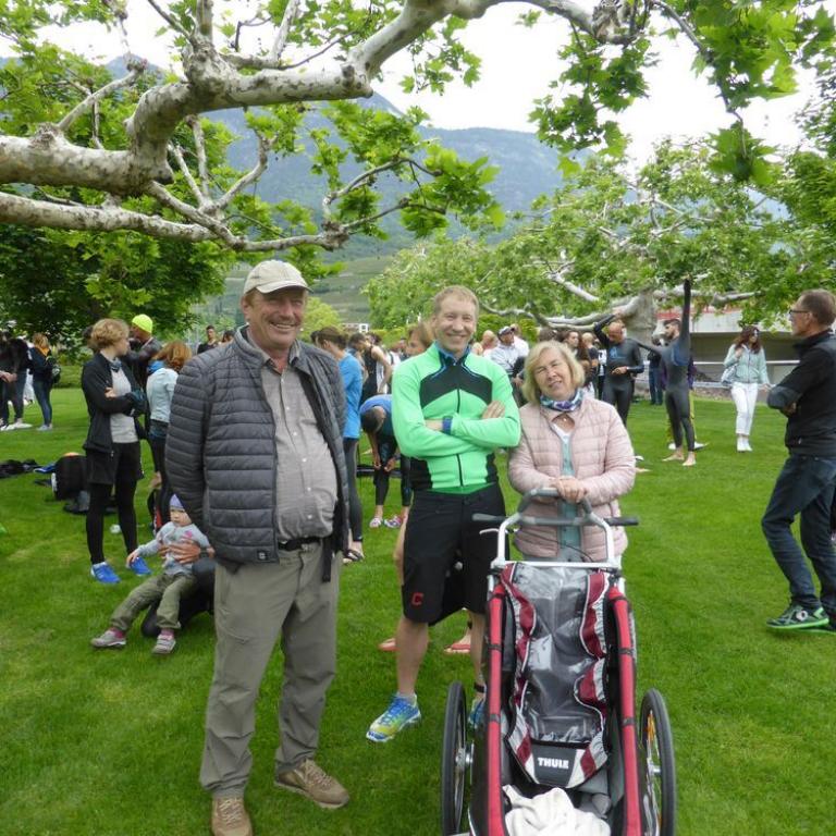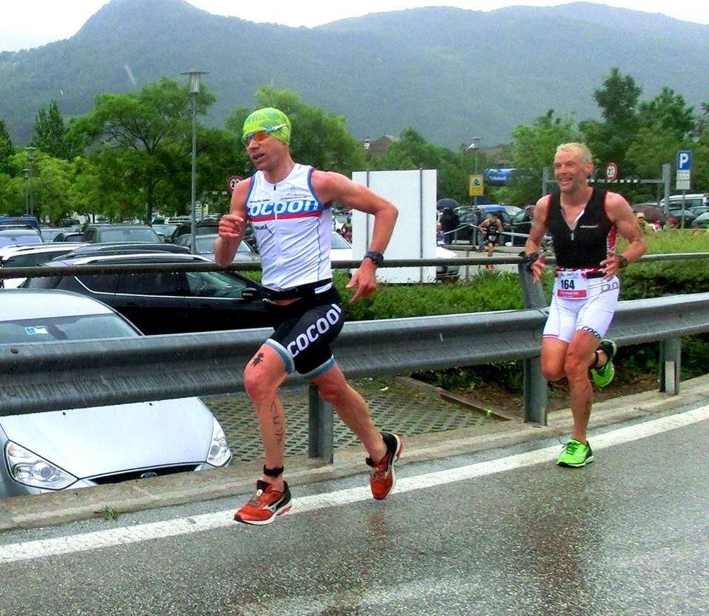 Nach einer Woche Trainingslager und vielen Kilometern und Höhenmetern, sollte auch nochmal geballert werden. Was liegt da näher? Natürlich der Kalterer See Triathlon, als erster Triathlon in der Saison. Eigentlich liebe ich mehr die langen Strecken mit 10 Stunden aufwärts, aber so zwischendurch ist eine Olympische Distanz (1,5 km Swim - 40 km Bike - 10 km Run) mit ein paar Höhenmetern auch nicht schlecht. Vormittags holten wir die Startunterlagen, während Emma, Opa, Oma und Brigitte Kaltern besichtigten. Das Wetter war durchwachsen , aber es regnete nicht. Naja mal schauen was heute geht. Motiviert bin ich natürlich wie eh und je. Langsam gingen wir nach dem Rad einchecken zum Start. Emma schlief leider im Wagerl ein und konnte mich nicht mehr anfeuern :-) Um 14:18 Uhr war ich dran und ging in das 16 Grad warme (eiskalte) Wasser. Ich schwamm in Richtung erste Boje. Es ging nicht gut, aber auch nicht schlecht. Nach der Boje fühlte ich mich besser und die Kälte machte mir nichts mehr aus. Nach knapp 27 Minuten stieg ich nach einem Zwischenlandgang dann endgültig aus dem Wasser und sprintete in die Wechselzone. Rauf aufs Rad und ab ging es den ersten Anstieg hoch. Ich war nur am Überholen, anscheinend können die Italiener keine Berge fahren. Ich sauste dann die Serpentinen nach unten und war komplett alleine. Aufeinmal drehte ich mich um und hinter mir klebten in dem Windschatten freigegebenen Rennen 4 Triathleten. Ok ich ballerte am Ostufer des Sees entlang und wir wechselten uns ab. Cool das war sehr entspannt und eigentlich sogar locker. Nach der ersten Runde ging es wieder 150 Höhenmeter nach oben. Wieder ließ ich alle stehen und war weit vor allen am Berg oben und konnte nach unten sausen. Irgendwann kriegte mich dann auf der Geraden die Gruppe wieder und ich fuhr in vorderster Front, wie auch Windschatten. So ging es auch in der dritten Runde. Krass waren die alle schlecht am Berg. Egal, aber ich konnte Stolz sein, mich hat kein einziger am Rad überholt :-) Nach 1 Stunde 10 Minuten hatte ich die 40 Kilometer und 450 Höhenmeter durchgedrückt. Ab in die Wechselzone und rein in die Laufschuhe. Jetzt kam mein Part, Laufen und Ballern. 3 mal 3,2 Kilometer mit ein paar Höhenmetern waren angesagt. Attacke und ab ging es im 3:40 er Schnitt. Fuck war ich gut drauf. Ich lief und lief teilweise im 3:20 er Schnitt. Bergauf wurde ich ausgebremst. In der 2 ten Runde überholte mich Ralf. Sau stark, mein Coach war Hammer unterwegs und wird sich den Altersklassesieg holen. Respekt. Ich versuchte dran zu bleiben, musste aber reißen lassen. Brigitte und ihre Eltern feuerten mich jede Runde an und Emma schlief :-) In der letzten Runde gab ich alles und überholte was das Zeug hielt und konnte auf die knapp 10 Kilometer einen 4 er Schnitt halten. Das machte Spaß. Zum Schluß kam ich dann als 113 Gesamt von über 600 Startern ins Ziel. In der Altersklasse holte ich mir den 22. Platz in 2h 18 min 35 sec. Für mich war das eine super Zeit bei der Top Besetzung. Viele Profis waren am Start, somit konnte ich sehr zufrieden sein. Am Abend gab es ein leckeres Abendessen und ein paar Wein in einer gemütlichen Laufstilanalyse Runde...