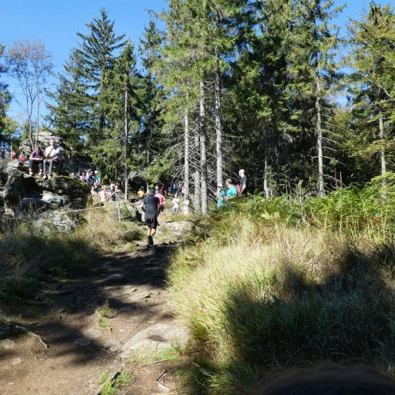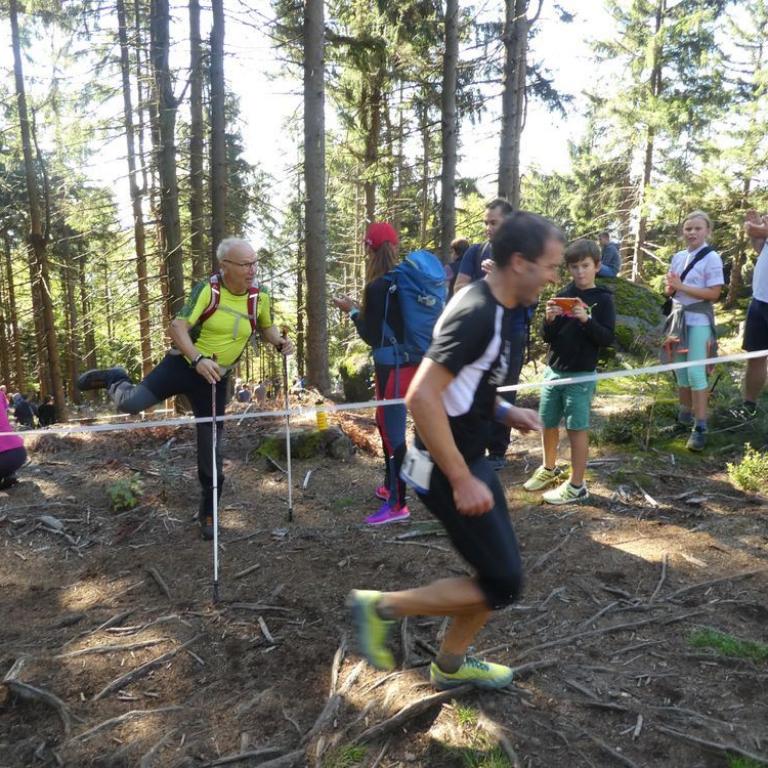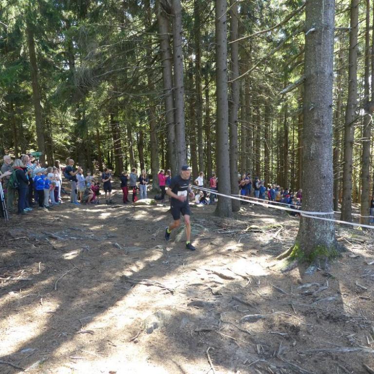 Endlich wieder ballern, oder wenigstens so was ähnliches wie Ballern :-) Nach meinem Ultra Trail Mont Blanc Abenteuer vor 2 Wochen über 172 km 10200 Hm hören sich die 7 km 700 Hm beim Kine vom Kaitersberg wie ein Kindergeburtstag an. Ist es aber nicht, da es 7 km am Limit sind. Dank meiner Schienbeinverletzung beim UTMB wollte ich beim Kine gar nicht erst an den Start gehen. Da aber mein gestriger Testtraillauf überraschend positiv und schmerzfrei verlief, fuhr ich kurzerhand mit Brigitte und Timi doch nach Bad Kötzting. Ich freute mich so richtig wieder auf einer kurzen Strecke ballern zu können. Viele bekannte Gesichter, Freunde, Laufkollegen, Deutsche Meister und Weltmeister fanden sich an der Startlinie. Wie immer war der Lauf top organisiert. Nach dem Startschuss ging es wie jedes Jahr so richtig zur Sache. Mit einem 3:54 Schnitt auf den ersten Kilometer war ich noch relativ langsam gegenüber den Topläufern. Ich kämpfte mich die Trails bis Reitenberg nach oben. Leider musste ich schon eingestehen, dass ich nicht unzerstörbar bin und die Haxn Meter um Meter schwerer wurden. Der Mont Blanc hinterließ Spuren :-) Die letzten 2 Kilometer ging es so richtig steil an der Räuber Heigl Höhle vorbei nach oben in Richtung und Finish, dem Kreuzfelsen auf 999 m. Kurz vor dem Ziel stand Brigitte und Timi, die ich nur wage wahrnahm. Mein Puls war im Hoch bei 189 Schlägen. Die Mäuse feuerten mich an, ich wankte aber kämpfte :-) Nach 45:18 Minuten kam ich dann als 29. von 245 Startern ins Ziel auf dem schönen Aussichtsberg. Na ja irgendwie war es klar das ich meine Bestzeit von knapp über 43 Minuten nicht knacken konnte, deshalb durfte ich eigentlich ganz zufrieden mit dem Ergebnis sein :-) Da ich anscheinend noch nicht ganz ausgelastet war, kämpften wir uns am späten Nachmittag noch mit MTB und Timi im Babyjogger weitere 600 Hm zum Brotzeitln auf den Grandsberg :-)
