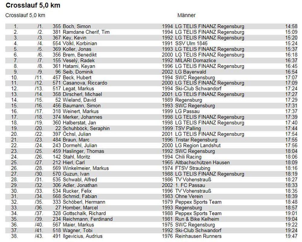 Der Start beim Intersport Tahedl Nikolauslauf in Regensburg stand, dank einer Op unter der Woche, die eigentlich eine 10 Tage Sportpause beinhaltete, etwas auf der Kippe :-) Da es mir aber überraschend gut ging und ich von Natur aus unvernünftig bin, testete ich am Samstag 10 km locker mit Timi im Babyjogger :-). Also stand dem Start am Sonntag nichts im Wege. Bei richtigem Sauwetter stand ich dann am Start in der Elite Gruppe. Hier waren die Spezialisten von der LG Telis Finanz unterwegs. Klar hatte ich hier keine Chance auf vordere Plätze. Nach dem Startschuß zogen auch schon die ersten davon. Ich lief mein Tempo und das war ein 3:40 er Schnitt. Ich war mehr beschäftigt den vielen Wasserpfützen auszuweichen, als mich auf den Lauf zu konzentrieren. In der zweiten Runde konnte ich eine Schippe drauf legen und der ein oder andere Läufer sah mich nur noch von hinten. Brutal wie weit weg aber viele der Kurzstreckenspezialisten schon waren. In der dritten Runde gab ich nochmal alles und schaffte dann auf der amtlich vermessenen 5 km Runde eine Zeit von 18:16 Minuten. Nicht überragend, aber trotzdem war ich der Umstände wegen, ganz zufrieden. In der Elite Wertung wurde ich 26. von 38 Startern. Den Funrun, der nach der Elite startete, hätte ich gewonnen. Aber ich will mich ja noch mit der Elite messen :-)