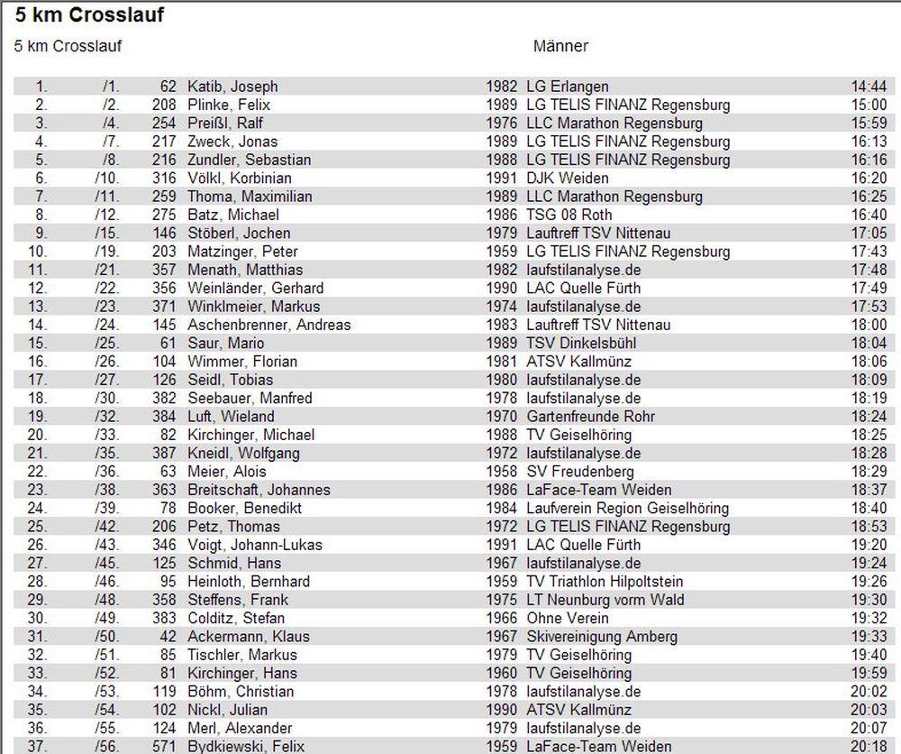 Mein erster kleiner Testlauf nach 2 Monaten mit Trainingsplan. Erwartet hatte ich nicht viel da ich ja noch immer an der Grundlagenausdauer feilte und noch fast keine Tempoläufe absolvierte. Mit dabei waren Brigitte, Hans und Wolfi. Wir liefen natürlich für die Laufstilanalyse.de mit noch ca. 20 weiteren Athleten. Zuerst stand gemeinsames Warmlaufen auf dem Programm, bis dann um viertel nach 11 der Startschuß über die 5 km fiel. Ich kam sehr gut weg und war überrascht den ersten Kilometer in 3:25 Minuten hinter mich gebracht zu haben. Die Kilometer 2 bis 4 ließ ich etwas langsamer mit ca. 3:40 Minuten angehen und merkte dann das ich noch einiges an Kraft hatte und konnte somit den letzten Kilometer nochmals in 3:25 laufen. Ich wurde insgesamt 13. von 69. männl. Teilnehmern in einer Zeit von 17:53 und einem Kilometerschnitt von 3:35 min. Das Training machte sich schon bezahlt, da ich ein solches Ergebnis nicht erwartet hatte. Brigitte schaffte die Strecke in knapp über 30 Minuten was auch eine sehr gute Leistung ist. Auch der gemütliche Teil kam später bei der Siegerehrung mit den ganzen Laufstilanalyseathleten nicht zu kurz.