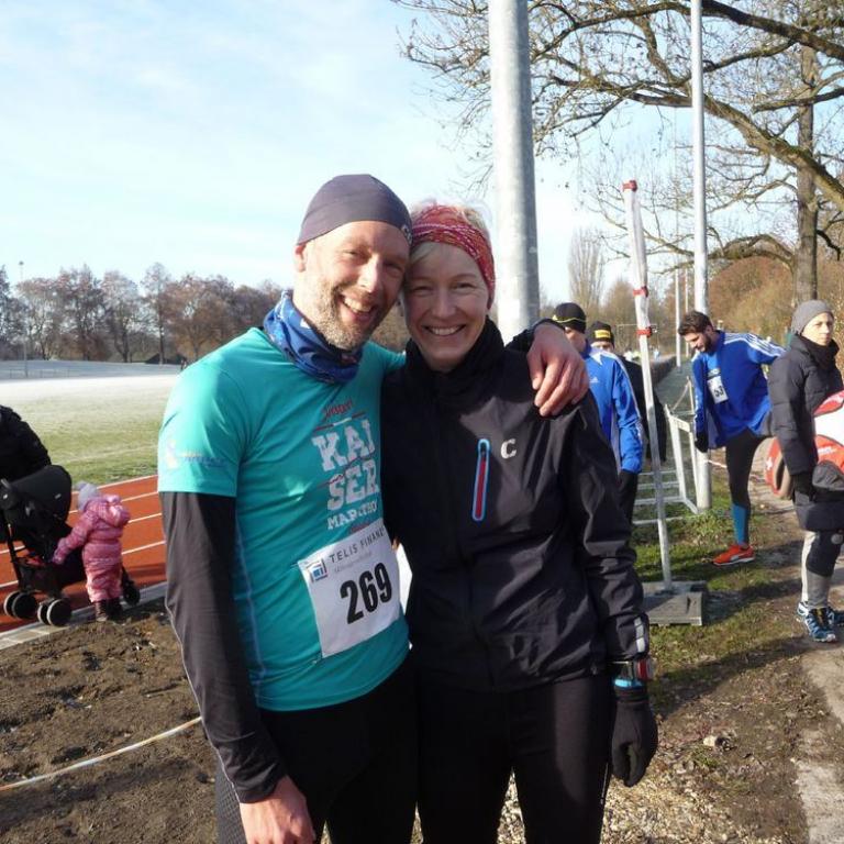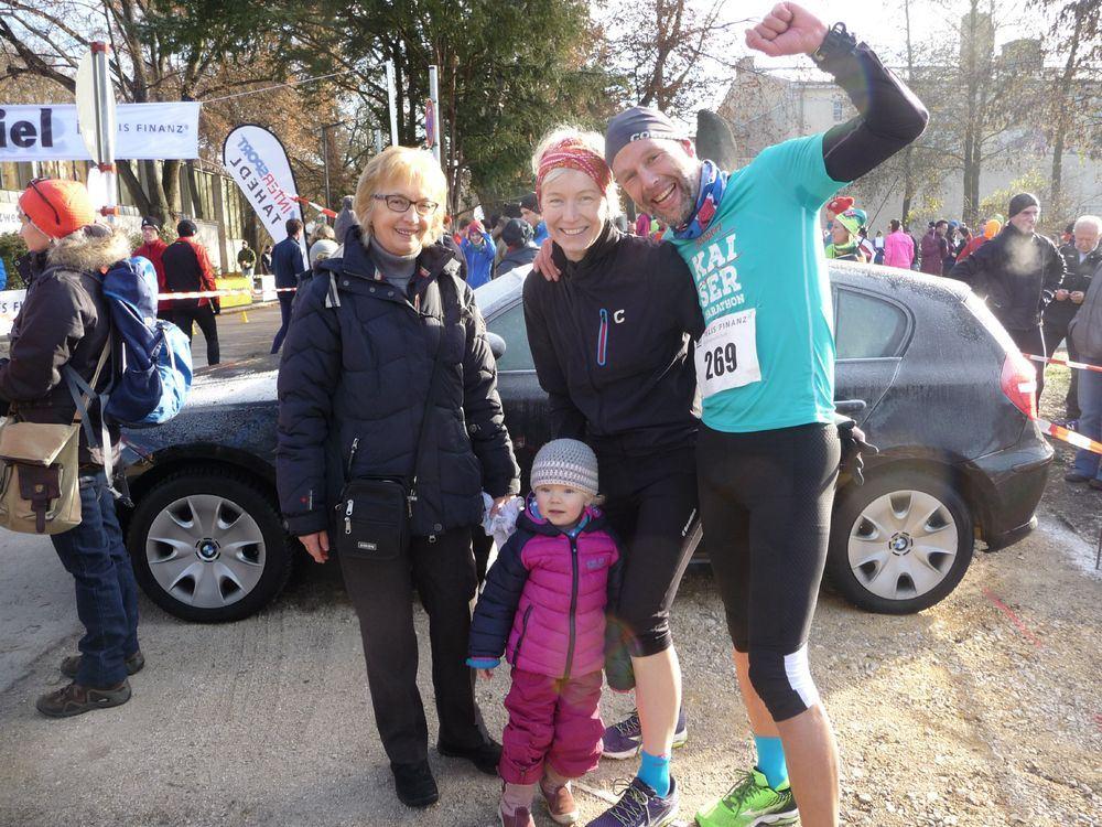 Mal wieder wollte ich persönliche Rekorde knacken. Beim Nikolauslauf in Regensburg sollte meine 5 km Bestzeit von 2014 fallen, bestenfalls sogar die 17 Minutenmarke. Im letzten, wie auch vorletzten Jahr hatte ich 17:18 Minuten stehen. Ich hatte gut trainiert und fühlte mich bereit für neue Rekorde, aber nicht immer kann dies klappen. Nun mal kurz von vorne. Der Lauf wurde aufgeteilt in Elite und Hobbyläufer. Die Elite sollte unter 20 Minuten auf das Papier bringen können. Natürlich stand ich um 11 Uhr mit Ralf und weiteren Laufstilanalyseathleten am Start der Elitegruppe. Der Moderator kündigte Olympiateilnehmer, Deutsche und Bayerische Meister an und wir mittendrin. Und alle um mindestens 20 Jahre jünger als ich. Da werde ich nicht vorne mitlaufen können, also reihte ich mich eher weiter hinten ein. Aber nach dem Startschuss war das Gedränge groß und viele vor mir hielten mich dann doch eher auf. Erst nach ca. 200 m konnte ich mein Tempo laufen. Ich hielt mich hinter Matthias und musste erst in Tritt kommen. Nach einer Runde versuchte ich das Tempo zu verschärfen und machte auch den einen oder anderen Platz gut. Nur den berühmten Winkl-Ehrgeiz konnte ich leider nicht so richtig entwickeln. Ich hatte keinen an den ich mich hängen, bzw. gegen den ich fighten konnte. So lief ich größtenteils alleine. Erst kurz vor dem Ziel lief ich auf eine Gruppe auf, wo ich noch 3 oder 4 versenken konnte. Nach 17:36 Minuten lief ich dann als 19.Gesamt durchs Ziel. Meine Bestzeit hatte ich um 18 Sekunden verfehlt und war schon etwas enttäuscht, obwohl ich eine 3:38 er Pace halten konnte. Auch war ich nach dem Lauf nicht so kaputt wie in den letzten Jahren, was mir zeigte, das ich einfach nicht alles gegeben hatte. Aber das war sicher nicht mein letztes 5 km Rennen und dann wird es wieder anders laufen. Aber schnell war mein Ärger verflogen. Brigitte startete 25 Minuten nach uns beim Hobbylauf. Ich duschte und war gleich wieder an der Strecke bei Emma, Opa und Omi um Brigitte anzufeuern. In der 2. Runde rief sie mir zu, dass es ihr schlecht ginge. Trotzdem dachte ich mir, dass sie super unterwegs ist. Mit hochrotem Kopf lief Brigitte durchs Ziel. Emma war begeistert von der Mama und ich von meinem Runningwife, als ich ihre Zeit sah: 25:36 Minuten. Dank des Intervalltrainings in den letzten Wochen konnte sie ihre Vorjahreszeit um über 2 Minuten verbessern. Wie immer war ich sau stolz auf meine Frau .