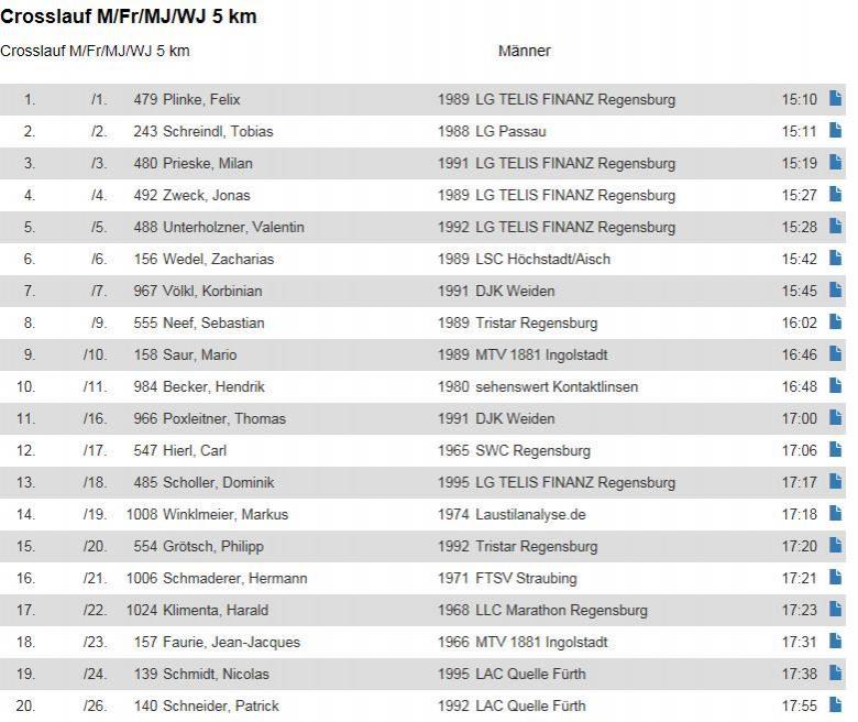 Eigentlich könnte ich den Bericht vom letzten Jahr kopieren :-) Mit Emma und Brigitte im Schlepptau fuhren wir nach Regensburg. Laufstilanalyse war stark vertreten. So macht es einfach Spaß mit vielen Bekannten am Start eines Wettkampfes zu stehen. Es waren viele Kurzdistanzspezialisten an der Startlinie und mir war klar das ich vorne leider nichts zu melden hatte. Bei leichten Plusgraden liefen alle nach dem Startschuss wie von der Tarantel gestochen los. Die Lg Telis Finanz Spezialisten vorne weg, aber in der zweiten Gruppe war ich dann schon vertreten. Den ersten Kilometer lief ich teilweise in einer 2:58 Pace. Es lief super und ich konnte den Speed auch in die zweite Runde bringen, wo ich immer wieder überholen konnte. In der letzten Runde wurde es dank der Überrundungen etwas schwieriger und ich musste teilweise Slalom laufen. Auch einen Winklendspurt hatte ich noch drin und konnte auf die letzten 100 m 3 Läufer hinter mir lassen. Mit 17:18 Minuten lief ich dann als 14. Gesamt von 94 männlichen Teilnehmern ins Ziel. Auf die Sekunde genau lief ich meine Bestzeit von 2014 auf 5 km. Die Pace lässt sich auch sehen: 3:36, da es laut GPS nur 4,8 km waren.