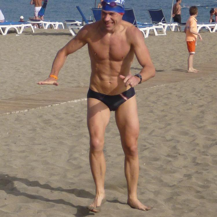 Um 16 Uhr trafen wir uns mit den anderen Laufstilanalyseathleten am Strand, wo der interne Swim&Run Wettkampf stattfand. Im Jagdstart (Zeiten vom 500 m Bahnschwimmen) ging es ins Wasser. Im Meer kämpfte jeder mit den Wellen. Ich hatte große Schwierigkeiten und merkte, dass ich in letzter Zeit nicht viel geschwommen war. Nach ca. 700 m war Landgang angesagt und weiter ging es den gleichen Weg zurück. Ich schluckte bei dem Wellengang ziemlich viel Wasser, kam aber trotzdem als 4. ins Ziel.