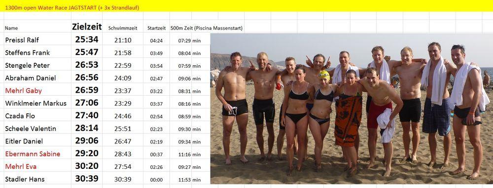 Open Water Race Teneriffa: 4. Platz auf 1300 m incl. 3 x Strandlauf