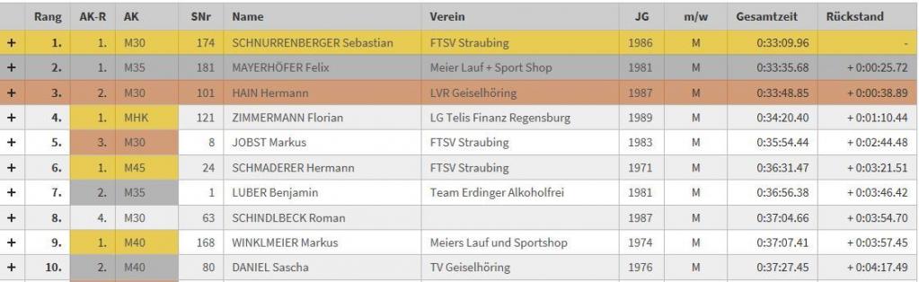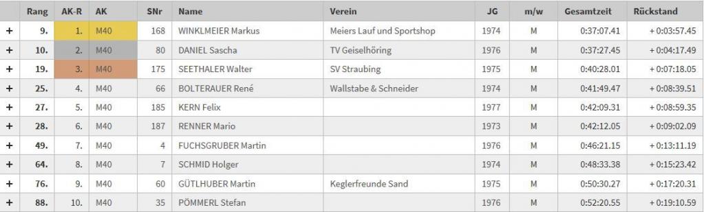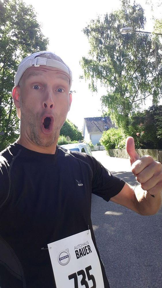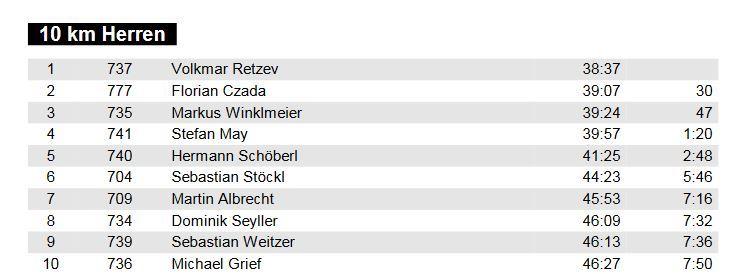Endlich wieder Ballern :-) Nach dem Ironman Frankfurt incl. einen teilweise Wandermarathon letzte Woche, wollte ich beim Rainer Volkslauf testen, was so 6 Tage danach noch geht. Und es ging gar nicht so schlecht. Dieses Mal startete ich für Meiers Sport und Laufshop. Danke Erwin für dein Vertrauen :-) Ich stand in der ersten Reihe mit den ganzen 10 km Spezialisten mit Schnurrenberger und Co. Es ging gleich zur Sache. Ich lag nach einem Kilometer, den ich in 3:32 lief an 12. Stelle. Meine Füße kamen aber langsam in Schwung. Nach 5 km stand dann mein Papa, Brigitte und Emma die mich anfeuerten. Ich lief ziemlich konstant Kilometer für Kilometer. Endlich konnte ich auch den einen oder anderen Platz gutmachen. Endlich kam der letzte Kilometer den ich in einer 3:36 Pace laufen konnte. Eigentlich wollte ich im Zielsprint noch 2 Plätze schnappen, aber dafür reichte meine Kraft nicht. Zwar weit von meiner Bestzeit auf 10 km entfernt, aber mit einer 3:41 Pace musste ich mich nicht verstecken. In 37:05 holte ich mir den 9. Gesamtplatz von 160 Startern und den Sieg in der Altersklasse. Ole Ole Winkl kann auch noch ballern :-)
