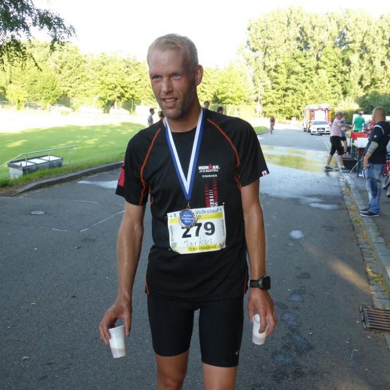 Viel gibt es nicht über den Rainer Volkslauf zu sagen. Bei 35 Grad um 18:30 Uhr werden sicher keine Rekorde gebrochen. Klar wollte ich alles geben, aber so richtig lief es nicht. Nach dem Ironman vor 3 Wochen fuhr ich mit dem Training herunter, die Laufeinheiten hielten sich in Grenzen, auch weil ich Probleme mit meiner rechten Ferse habe. Nach dem Start lag ich an 5. Stelle kurz hinter Hermann (FTSV) und hinter mir Daniel und Hans (ebenfalls FTSV). Nach 2 Kilometer lagen wir noch immer bei einer 3:30 Pace. Langsam musste ich etwas herausnehmen, da mir die Hitze ganz schön zusetzte. Hermann vergrößerte den Abstand und bei Kilometer 4 überholte mich Daniel und zwei weiter Läufer. Als 8. Gesamt ging ich in die 2. Runde und ich konnte nur noch auf Schadensbegrenzung laufen. Ich kam nicht mehr näher an den 7. ran und hinter mir konnte ich ebenfalls den Abstand gleich halten. Nach langen 39:05 Minuten erreichte ich als Gesamt 8. das Ziel. Die M40 war mega stark besetzt und deshalb wurde in der Ak nur 6ter. Brigitte hielt auch noch standhaft durch und feuerte mich an der Strecke an.
