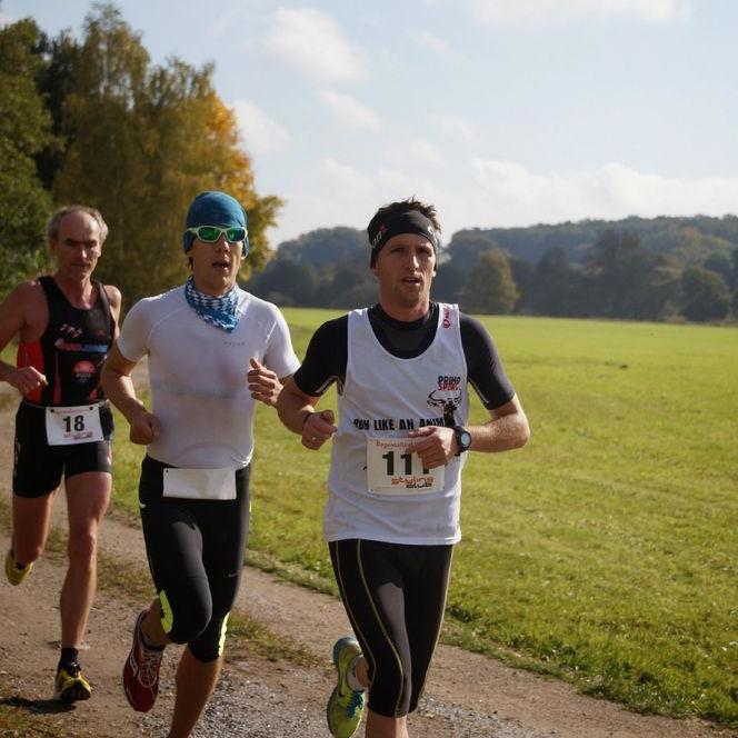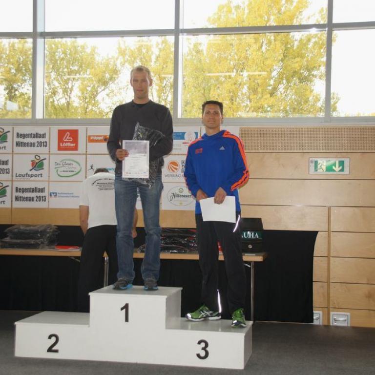 Eigentlich hatte ich nach dem verkorksten Marathon letzte Woche ganz schön die Schnauze voll und eine vierwöchige Pause war ja auch angesagt, bis das Ironmantraining Anfang November wieder beginnt. Da ich aber unverbesserlich und man glaubt es kaum, noch immer motiviert bin, stand ich am Start des Regentallaufes in Nittenau. Mit dabei war Brigittes Bruder Hans und ein paar Laufstilanalyseathleten. Das ganze Event war wieder super organisiert vom TSV Laufsport Nittenau. Wir hatten kühle Temperaturen um die 10 Grad, eisigen Wind, aber herrlichen Sonnenschein. Gleich nach dem Start zogen 5 Läufer davon. Ich konnte mich aber mit einem weiteren Läufer von den restlichen 130 Läufern absetzen. Wir wechselten immer wieder die Plätze, so das einer den Windschatten nutzen konnte. Nach 5 km verlor ich den Anschluss und wurde kurz darauf auch von Tobi überholt. Ich versuchte dran zu bleiben, was mir aber nur mit Abstand gelang. In dieser Reihenfolge kamen wir auch ins Ziel. Ich holte mir den 1. Platz in der AK M35 und wurde 8. Gesamt mit einer Zeit von 38:08. Leider verfehlte ich meine Bestzeit nur knapp, aber bei der hügeligen Strecke konnte ich trotzdem sehr zufrieden sein. Hans schaffte bei seinem ersten 10 Kilometerlauf gleich eine Zeit knapp unter 50 Minuten und war ebenfalls sehr zufrieden.