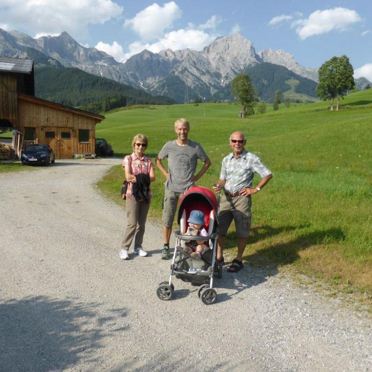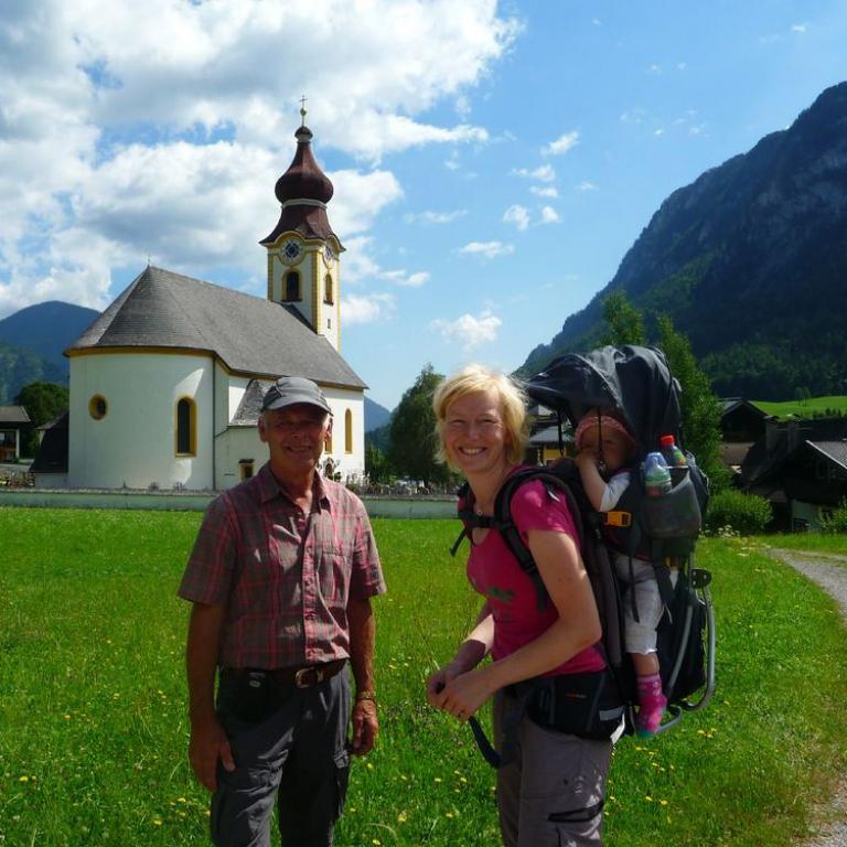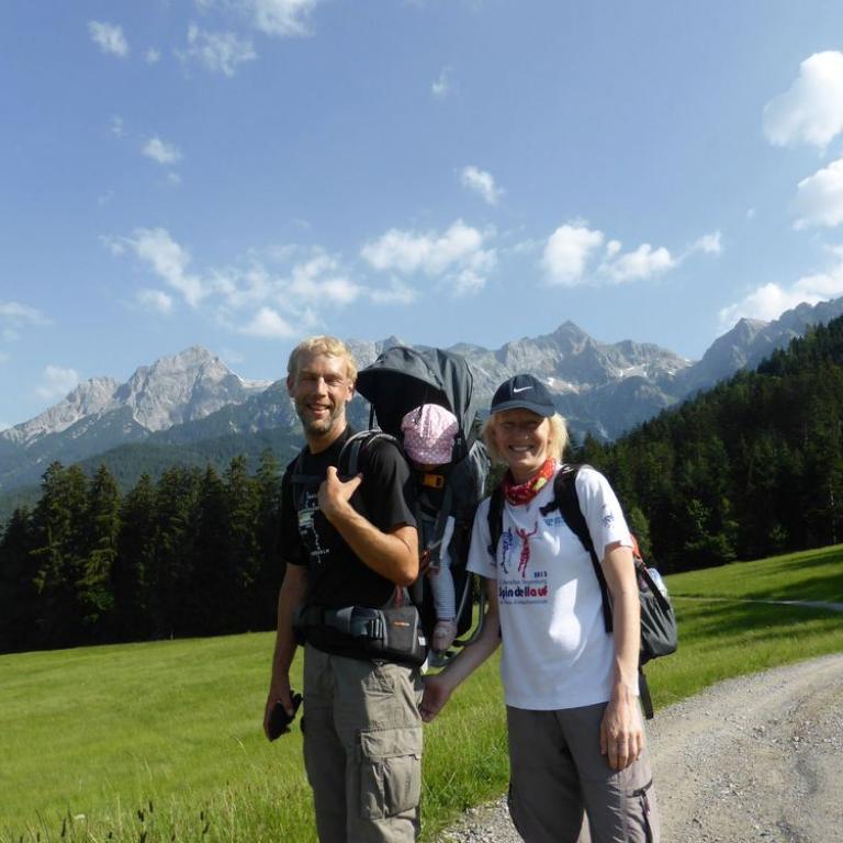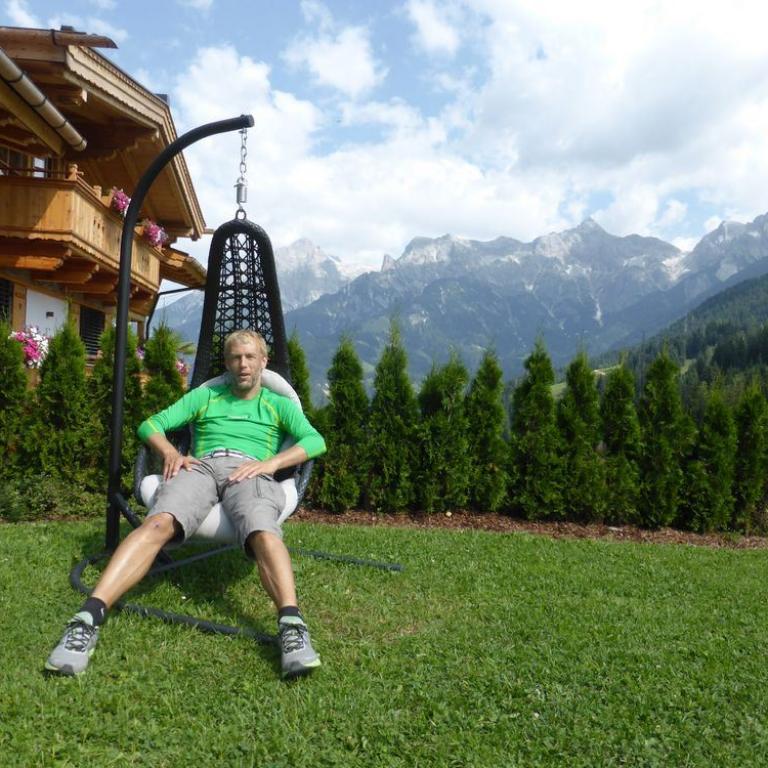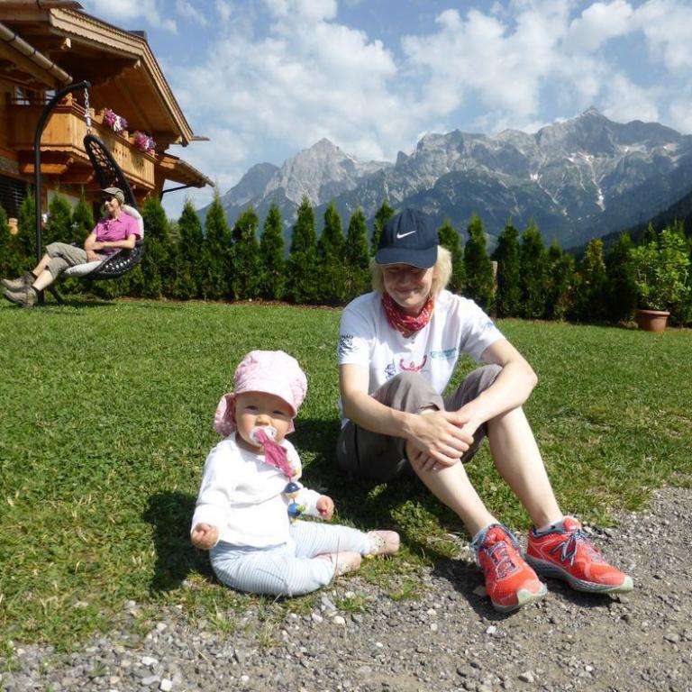 Trotz schwerer Füße wollten wir den schönen Tag nach dem Rennen am Sonntag noch nutzen und wanderten mit Emma in der Kraxn auf den Jufen auf 1150 m. Natürlich kehrten wir in der gleichnahmigen Alm ein und genossen die Aussicht auf Hochkönig und Co. Kurz nach Mittag machten wir uns wieder auf den Heimweg...